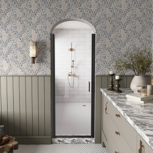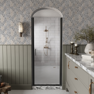 Los Flexi Reversible Pivot Shower Door, Fits 32″-33.5″ Wide, 1/4″ (6mm) Tempered Glass, Magnetic Seal & Auto-Lift Pivot System, Semi-Frameless Matte Black