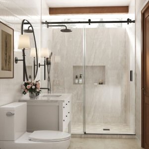$699.99Frameless sliding shower door with clear tempered glass, matte black hardware, reversible entry, and water-control features that suit many bathroom layouts. -