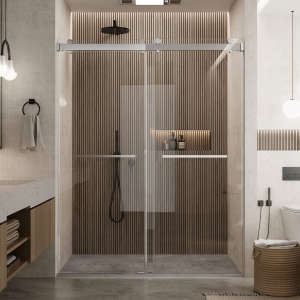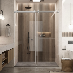 $589.99Get a sleek look with this Chrome frameless sliding door. Features 8mm SGCC glass, quiet soft-close and reversible setup. Simple to install and safe to use.