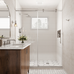 $699.99Clear tempered glass, chrome accents, and smooth sliding panels come together in this frameless door that upgrades any bathroom layout. -