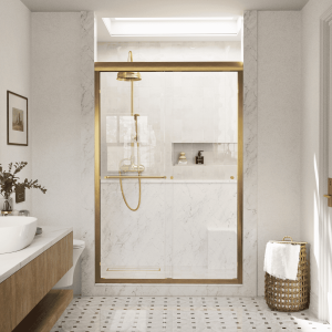 Los Flexi Sliding Shower Door Brushed Gold 48″W x 72″H with 1/4″ Tempered Glass