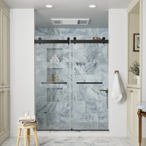 Los Flexi Double Sliding Shower Door 56″-60″ W x 70″ H, 6mm SGCC Tempered Glass and Semi-Frameless in Matte Black, Quiet Dual Rollers for Smooth Sliding