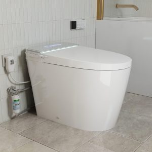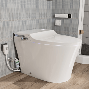 E6 smart toilet provides adjustable bidet modes, 1.28 GPF water-saving siphonic flush, LED display, and hands-free operation, ideal for every modern home.