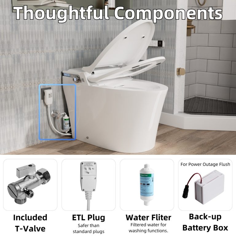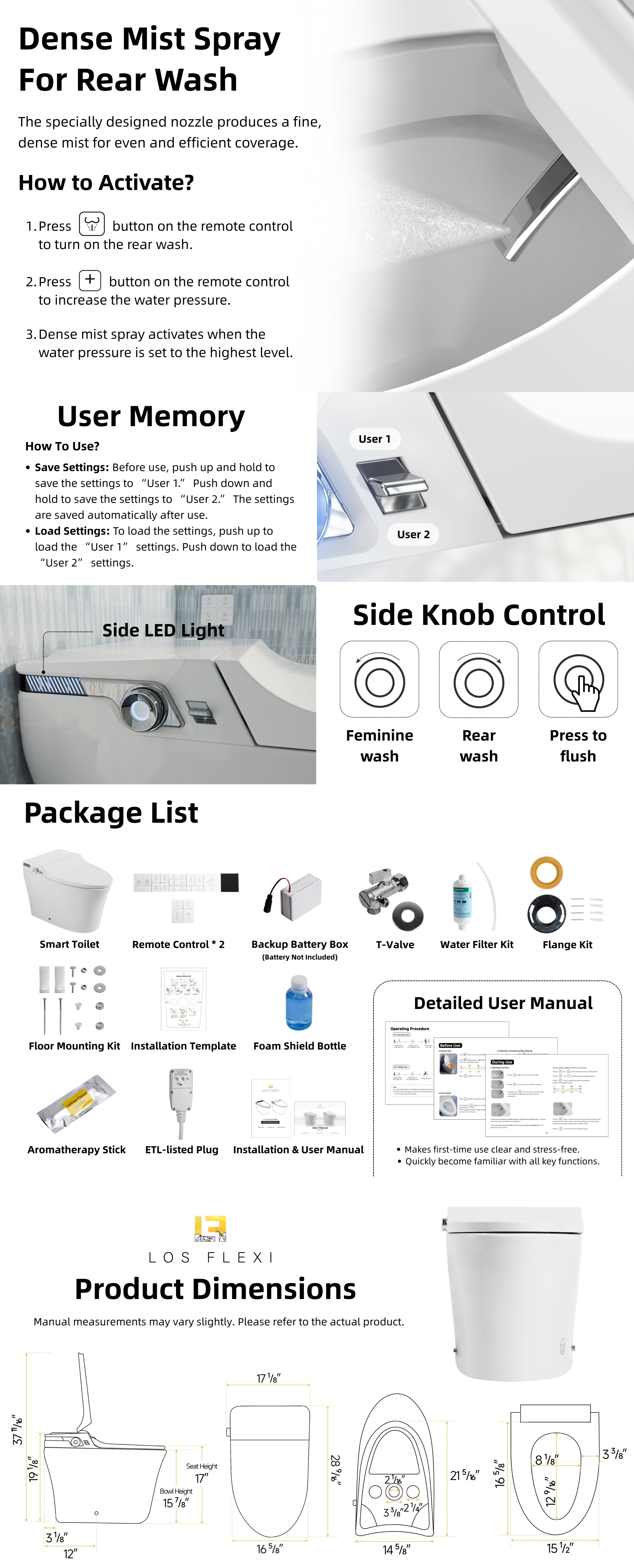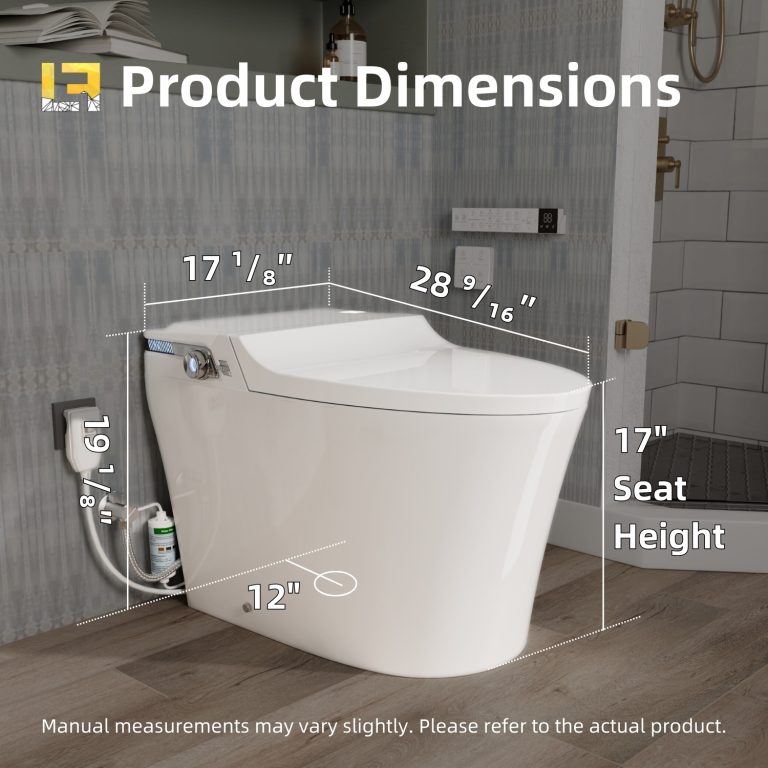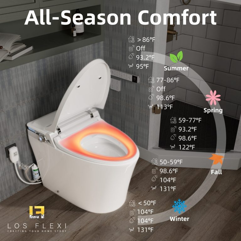 Los Flexi Y2 Smart Toilet with Bidet, 1000g MaP Quiet Flush, Large Built-In Tank, User Memory, Foam Shield, 17″ ADA, Dual Remotes, Auto Lid, Warm Water, Air Dryer, Heated Seat