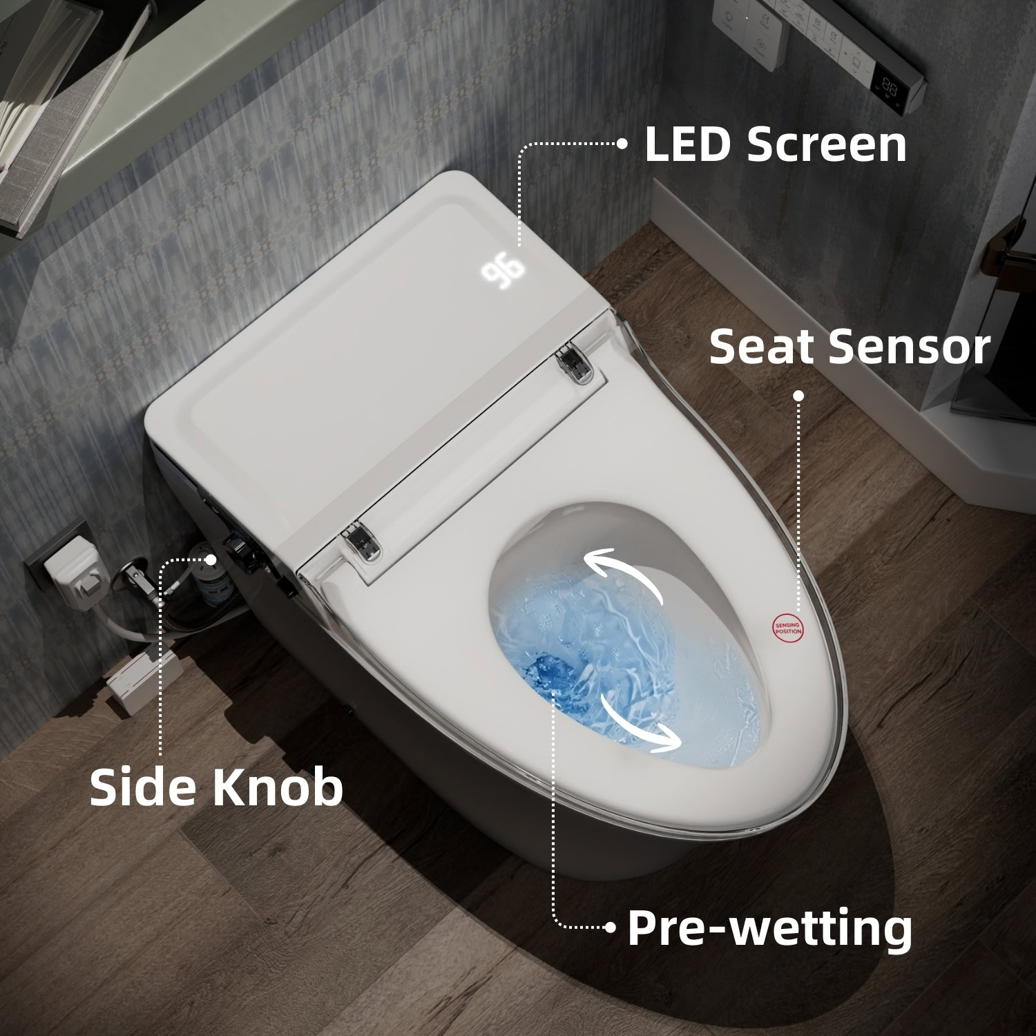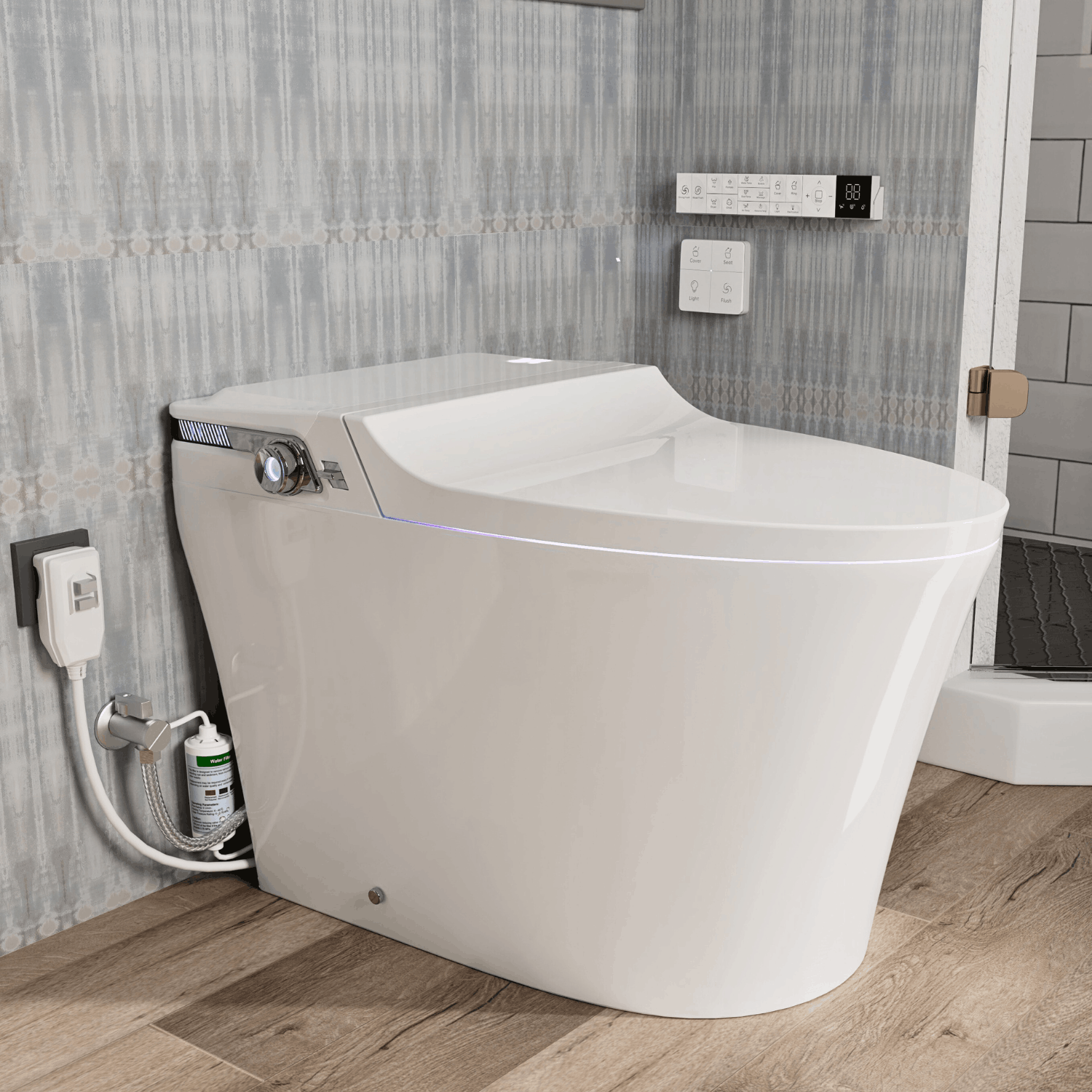 Customizable bidet functions include rear wash, feminine wash, and massage modes, paired with adjustable water temperature, nozzle positions, and pressure levels. A dedicated child wash mode defaults to gentle settings for added comfort. Radar sensing enables automatic lid opening and closing, while the seat sensor activates flushing when you stand. Side controls with clear indicators make daily operation intuitive. Designed for a standard 12-inch rough-in, the toilet includes a detailed manual, straightforward installation requirements, and dependable after-sales support.