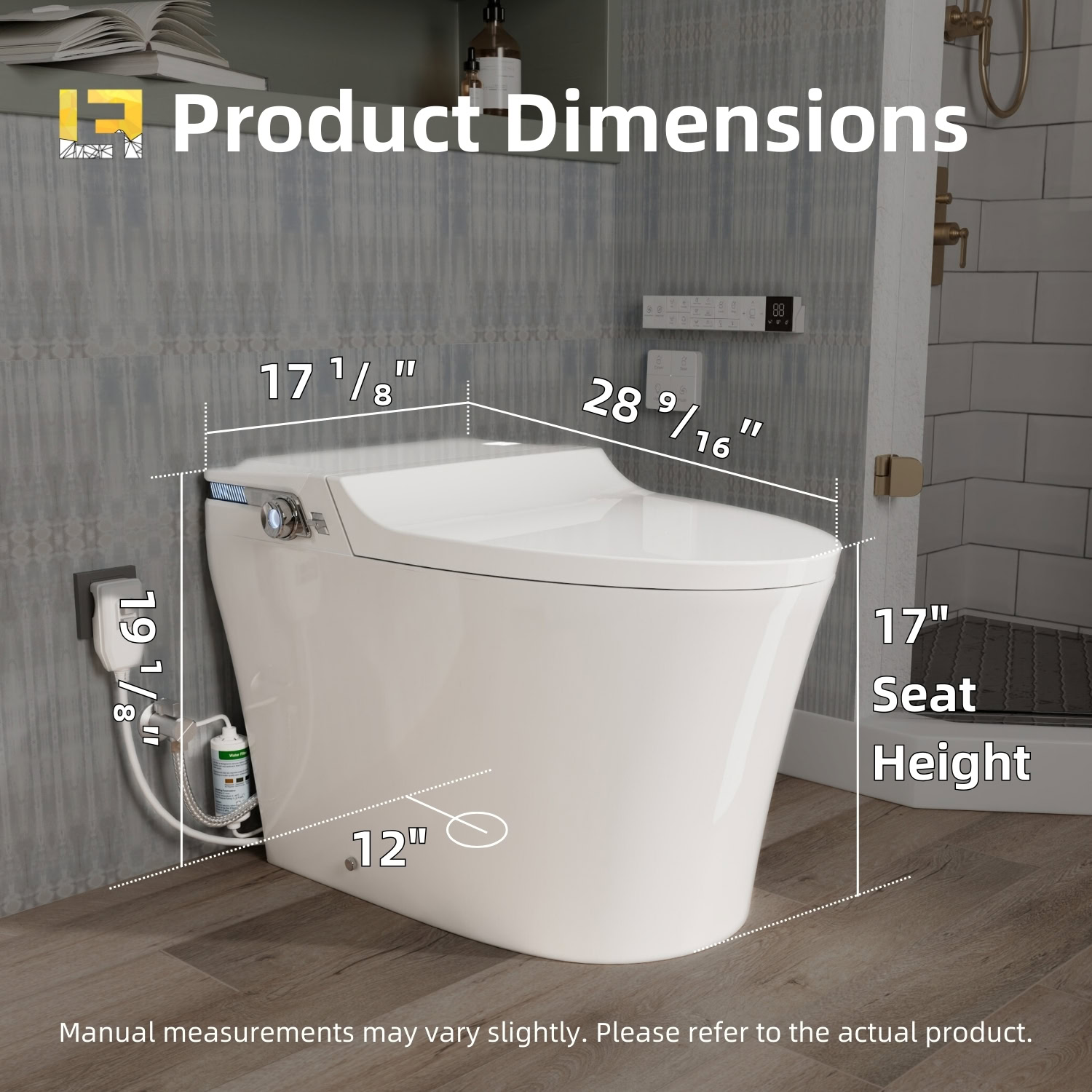 Los Flexi Y2 Smart Toilet with Bidet, 1000g MaP Quiet Flush, Large Built-In Tank, User Memory, Foam Shield, 17″ ADA, Dual Remotes, Auto Lid, Warm Water, Air Dryer, Heated Seat