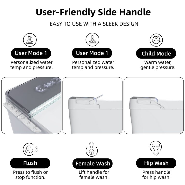 Comfort extends beyond washing. The heated seat and warm air dryer add year-round coziness, while hands-free operation (auto open and close, auto off-seat flush, and foot sensor control) reduces touch points to keep your bathroom experience more hygienic. The thoughtfully integrated removable child seat adapts seamlessly for kids and adults, eliminating the hassle of separate child seats or replacements. For more refined, user-friendly controls, the premium side control panel provides quick access, while the high-quality smart remote with digital display allows easy adjustments from a seated position.