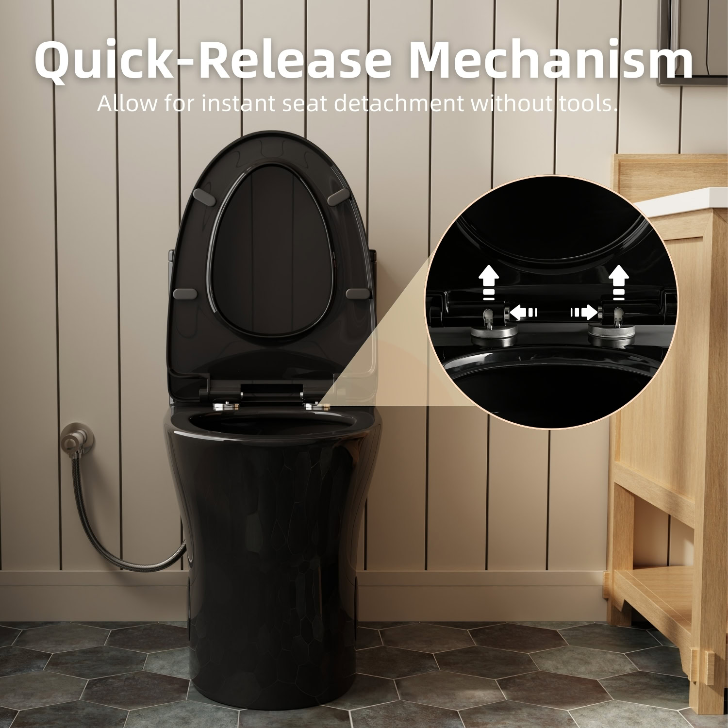 Designed to balance modern style with everyday functionality, this black one-piece toilet offers a refined solution for contemporary bathrooms. The comfort-height seating position supports smoother movement when sitting down or standing up, while the elongated bowl provides added space for a more stable and relaxed seating experience. Its dual flush system allows users to choose between 1.0 and 1.28 gallons per flush, helping manage water use without sacrificing dependable performance. A rimless swirl flushing design promotes thorough bowl rinsing and supports a cleaner interior with each use. Finished in a sleek black ceramic with a skirted base, the concealed trapway creates a streamlined appearance and simplifies exterior cleaning. Smooth shapes and a soft-close seat help reduce noise and contribute to a tidy look that fits well in both modern and transitional spaces. Designed for a standard 12-inch rough-in, this dual flush toilet installs easily in most residential bathrooms and is supported by a limited 2-year warranty, offering added confidence in long-term use and daily comfort.