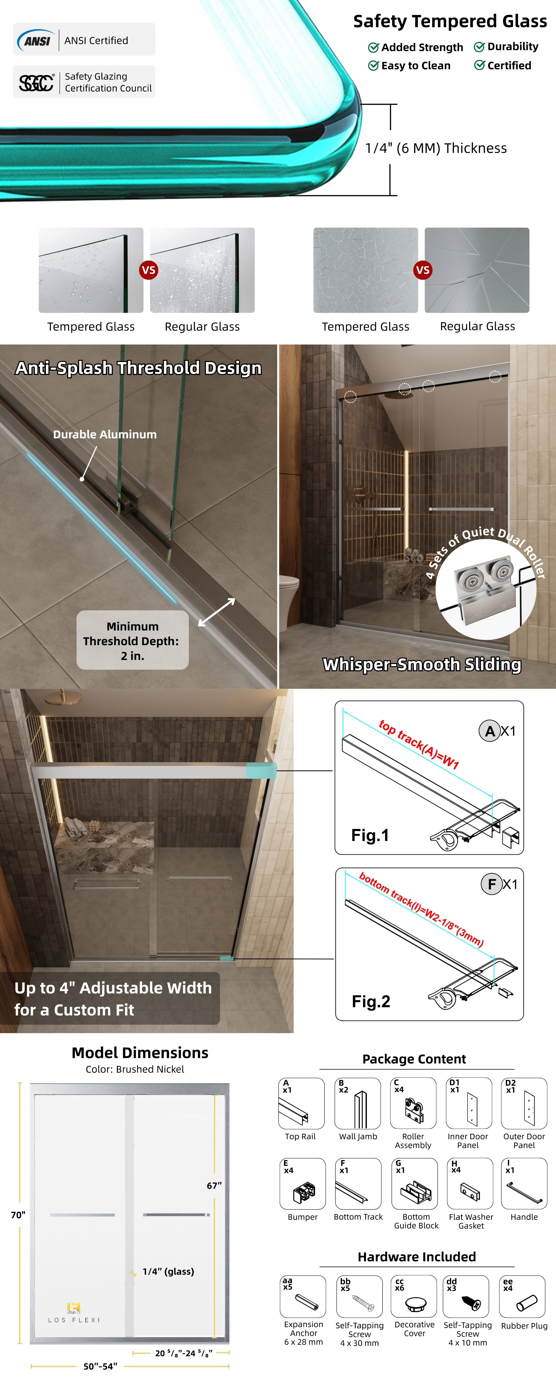 Designed for flexibility, the door includes up to 4 inches of width adjustment, allowing a better fit for a variety of shower openings. Whether you’re remodeling or upgrading, this sliding shower door provides a practical, stylish solution that combines durability, smooth operation, and easy adaptability.