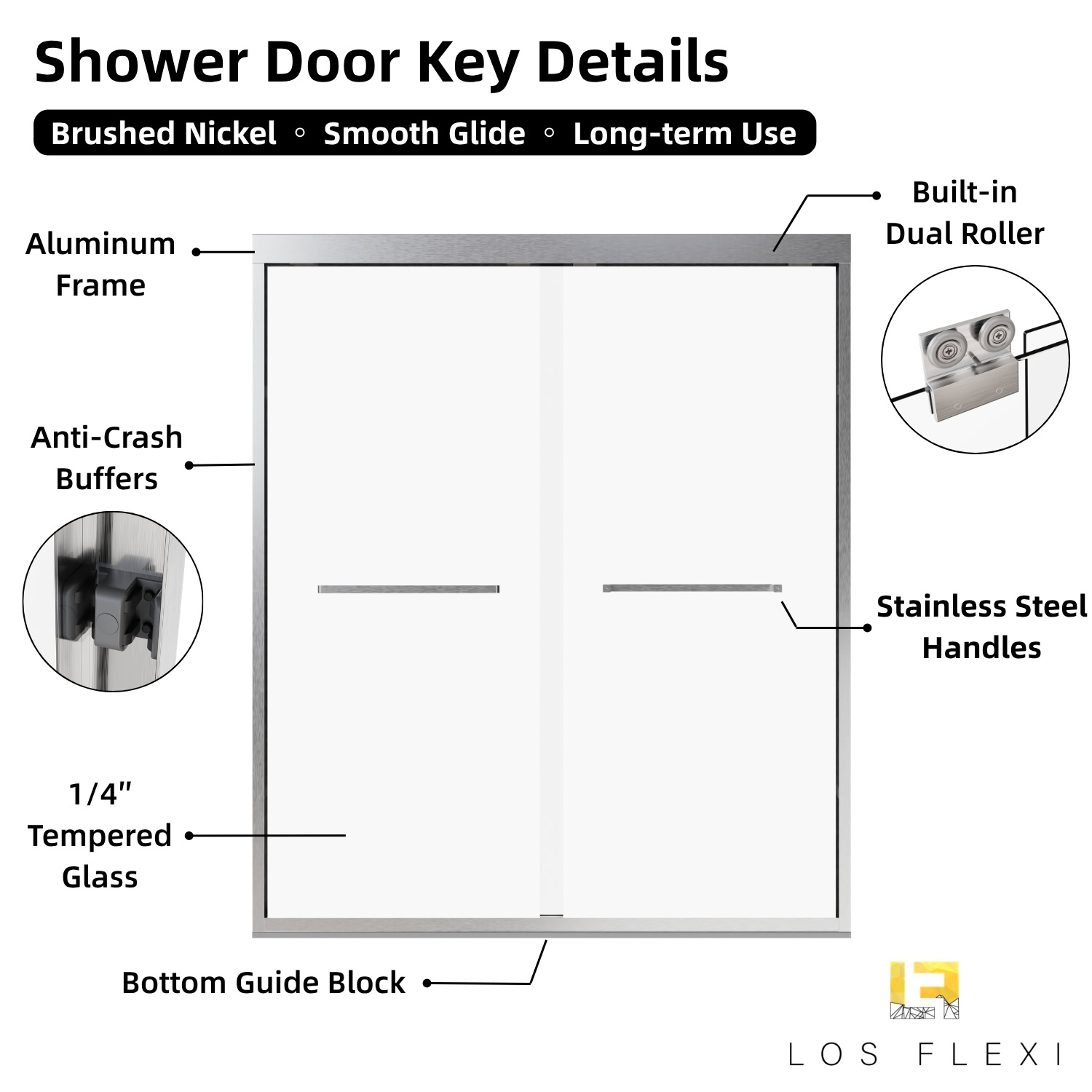 Los Flexi Double Sliding Shower Door Brushed Nickel 60″W x 70″H with 1/4" Tempered Glass