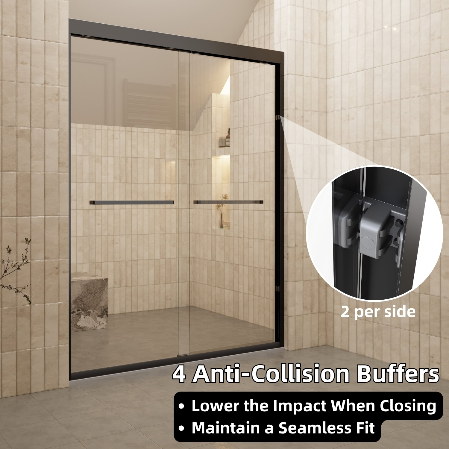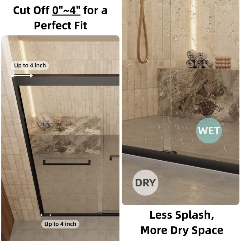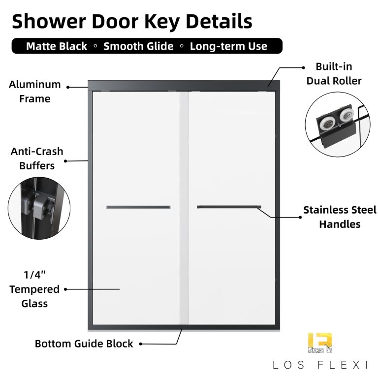 Refresh your bathroom with the Los Flexi Double Sliding Shower Door, designed for effortless function and a sleek, modern look. Built with smooth-gliding dual rollers and 4 anti-collision buffers, it ensures a controlled, quiet sliding experience for everyday comfort. The door features 1/4″ (6 mm) clear tempered glass paired with matte black stainless steel hardware, creating a bold, contemporary contrast while maintaining strength and long-term reliability. Its minimalist frame enhances light flow and visual space in any bathroom. With up to 4 inches of width adjustment, this sliding shower door offers flexible installation to suit different layouts. Ideal for upgrades or renovations, it combines refined style, dependable performance, and adaptable design for a seamless bathroom solution.