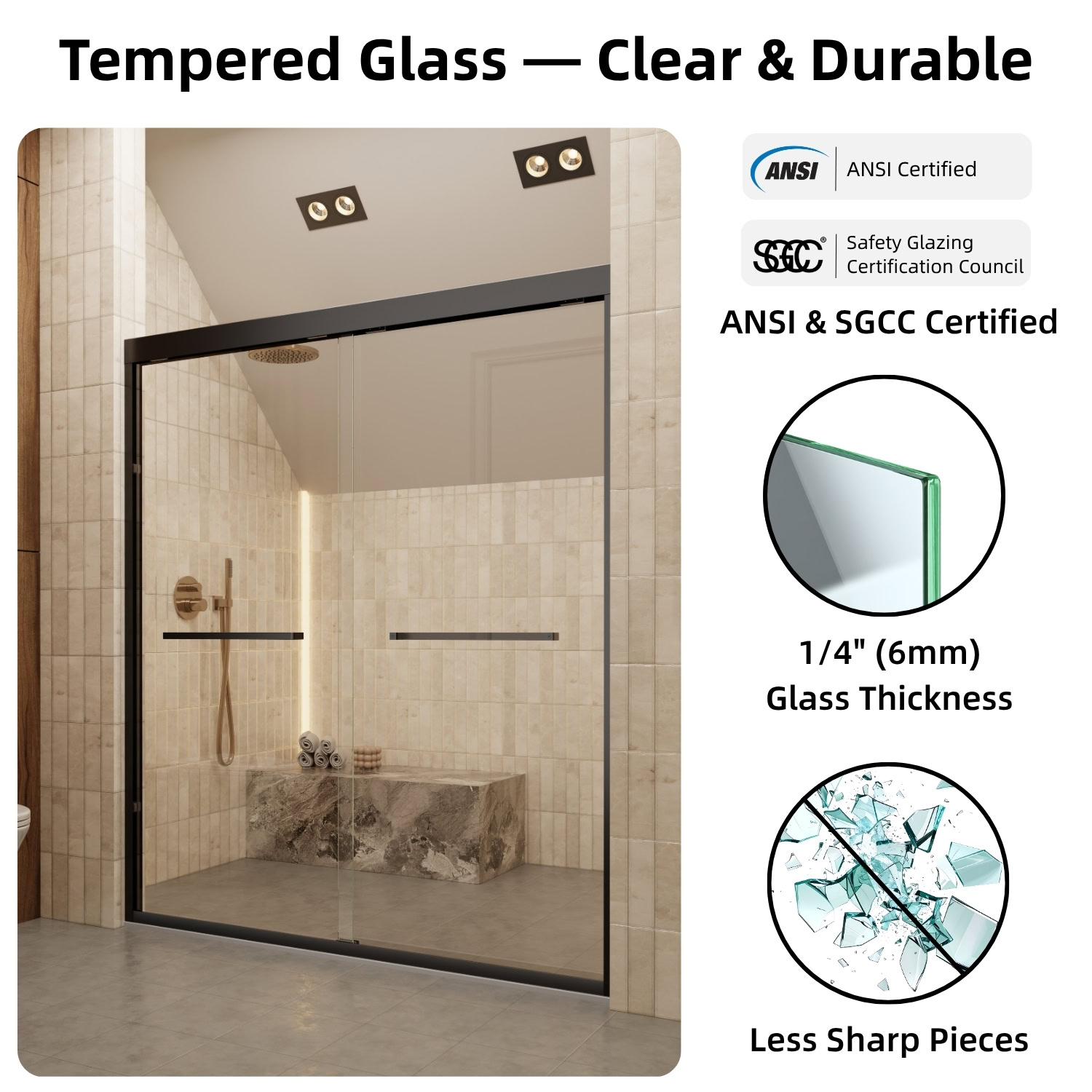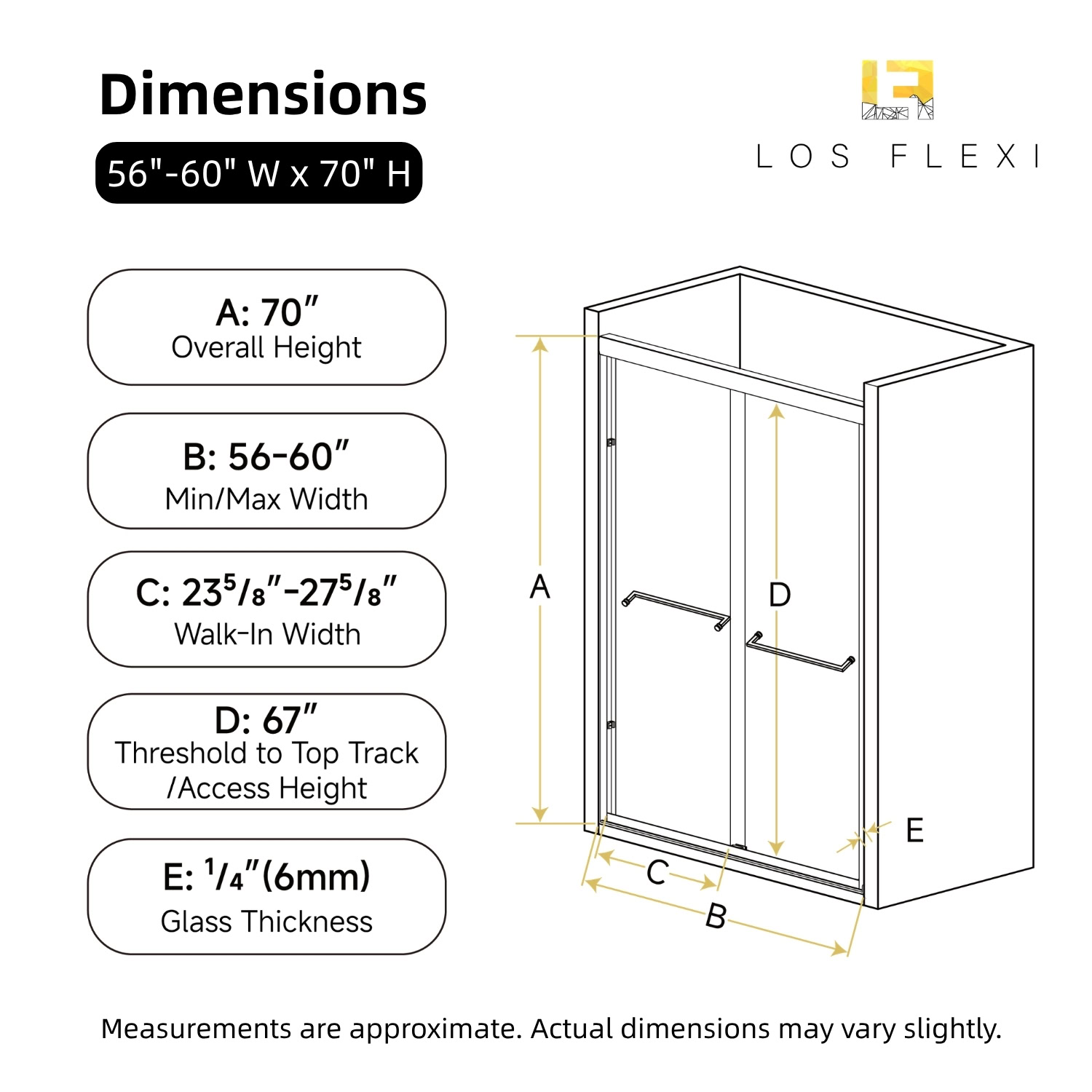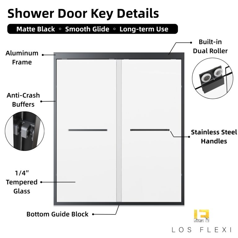 Los Flexi Double Sliding Shower Door Matte Black 60″W x 70″H with 1/4″ Tempered Glass