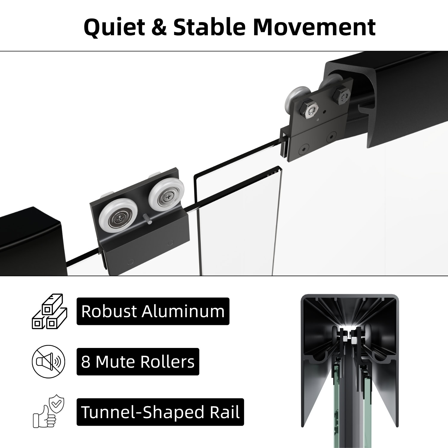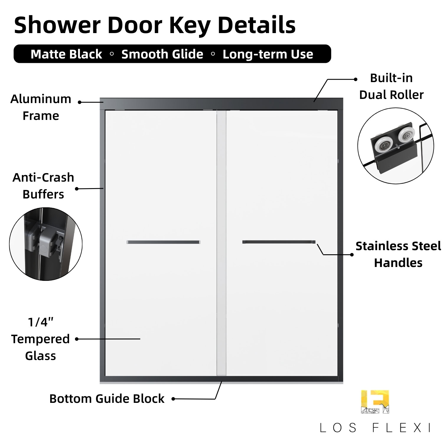Los Flexi Double Sliding Shower Door Matte Black 60″W x 70″H with 1/4" Tempered Glass
