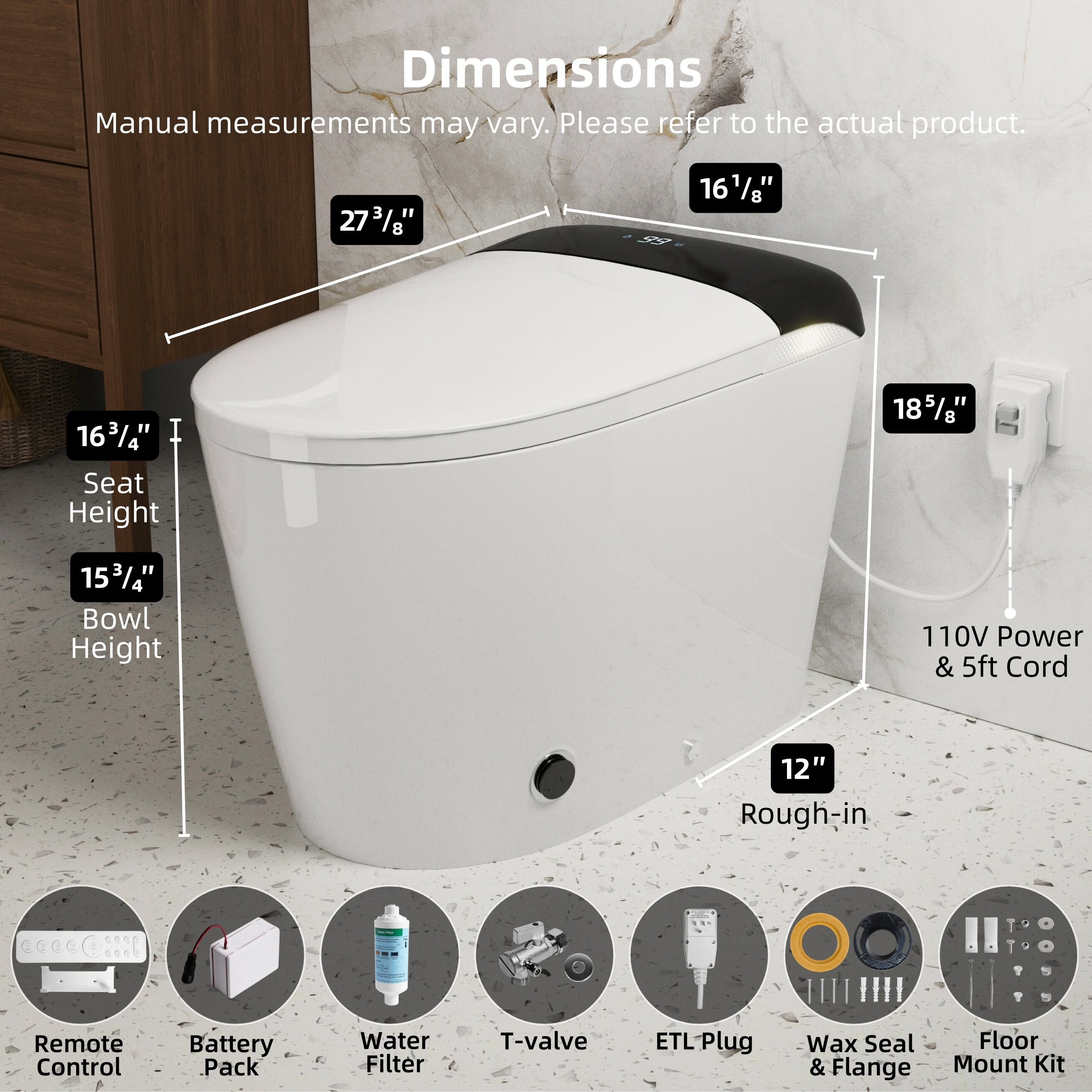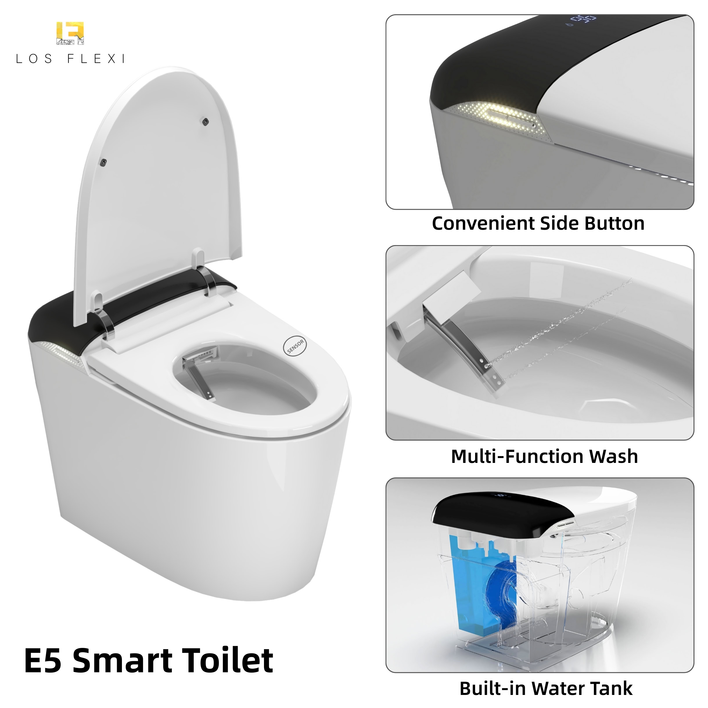 Los Flexi E5 Smart Toilet with Bidet, Built-In Tank, Auto Lid, Foot Sensor, Warm Water, Heated Seat, Air Dryer, UV Nozzle Light, Remote Control