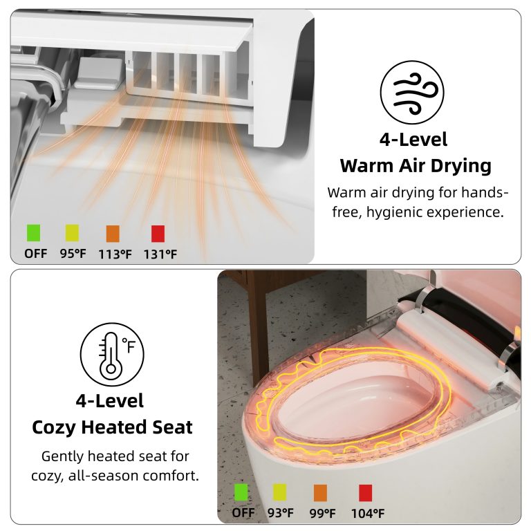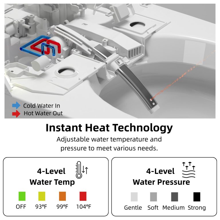 Experience personalized comfort with instant heating technology that provides continuous warm water, a gently heated seat, and a soothing warm air dryer. Multiple wash modes—including rear wash, feminine wash, and oscillating wash with a self-cleaning nozzle—combined with multi-level adjustments let you tailor every detail for a spa-like cleansing experience at home in every season.