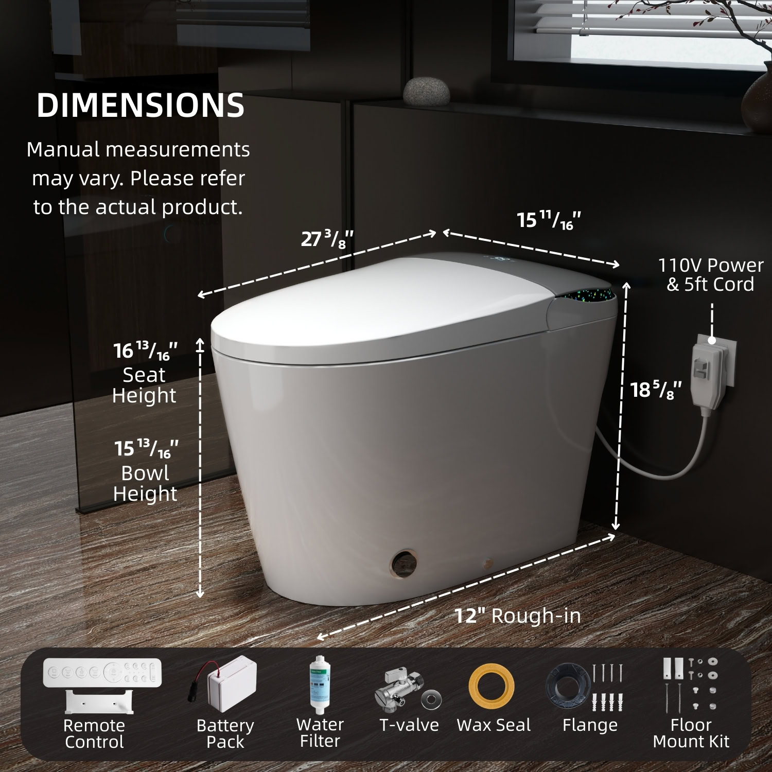 From the automatic open and close lid, foot-touch sensor for flushing, and remote control to the off-seat auto flush with the advanced pre-wetting technology that ensures a spotless bowl every time, each detail is engineered to elevate your daily ritual with complete convenience and unmatched hygiene. Additionally, it is powered by an ETL-listed plug, delivering safe, reliable performance year-round.
