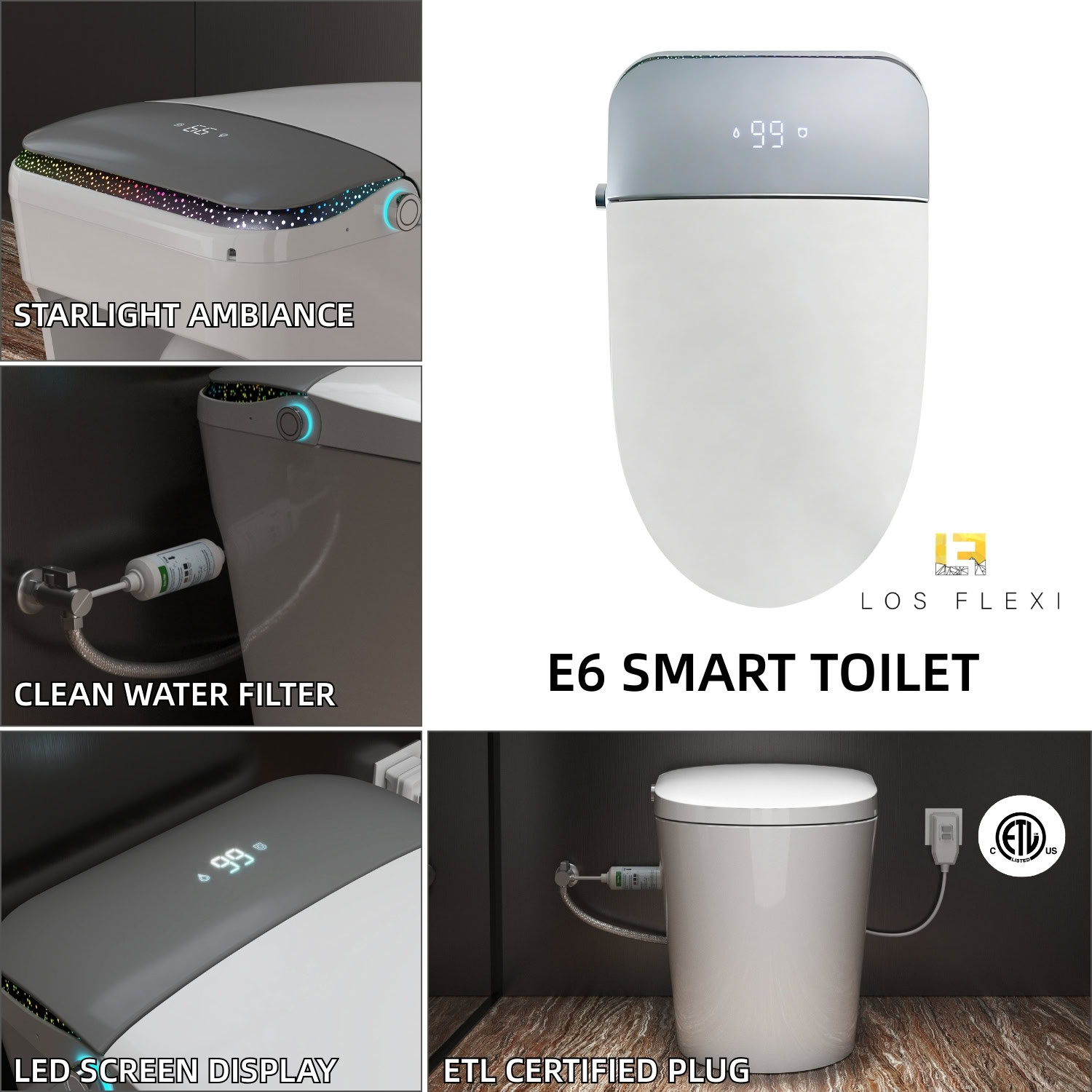 Los Flexi E6 Smart Toilet with Bidet, Built-In Tank, Auto Lid, Foot Sensor, Warm Water, Heated Seat, Air Dryer, UV Nozzle Light, Remote Control