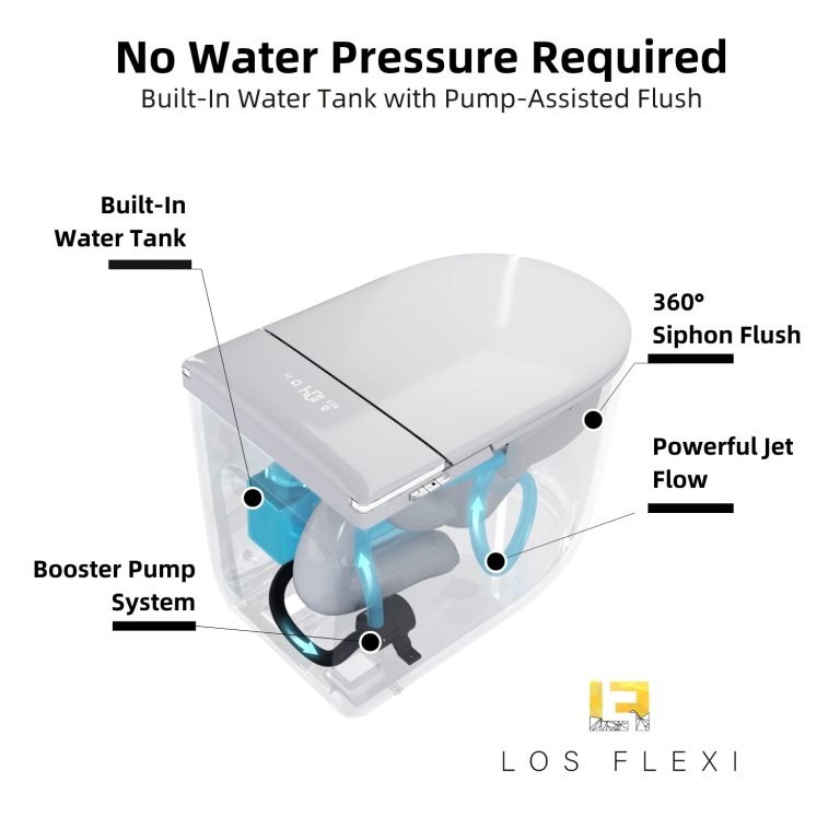 Los Flexi E81 Compact Smart Toilet With Bidet, Built In Water Tank, Auto Lid, Foot Sensor, Warm Water, Heated Seat, Air Dryer, Remote, ETL Plug