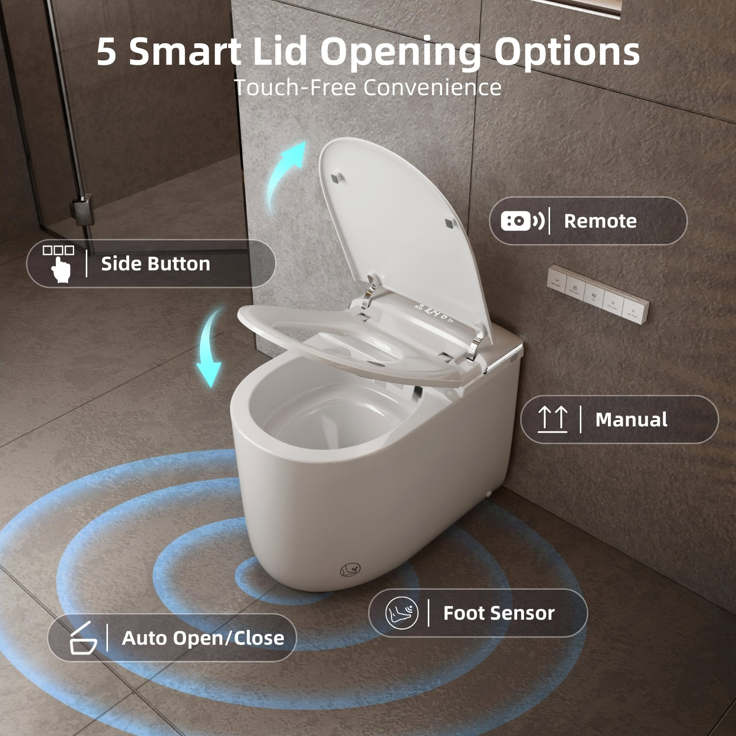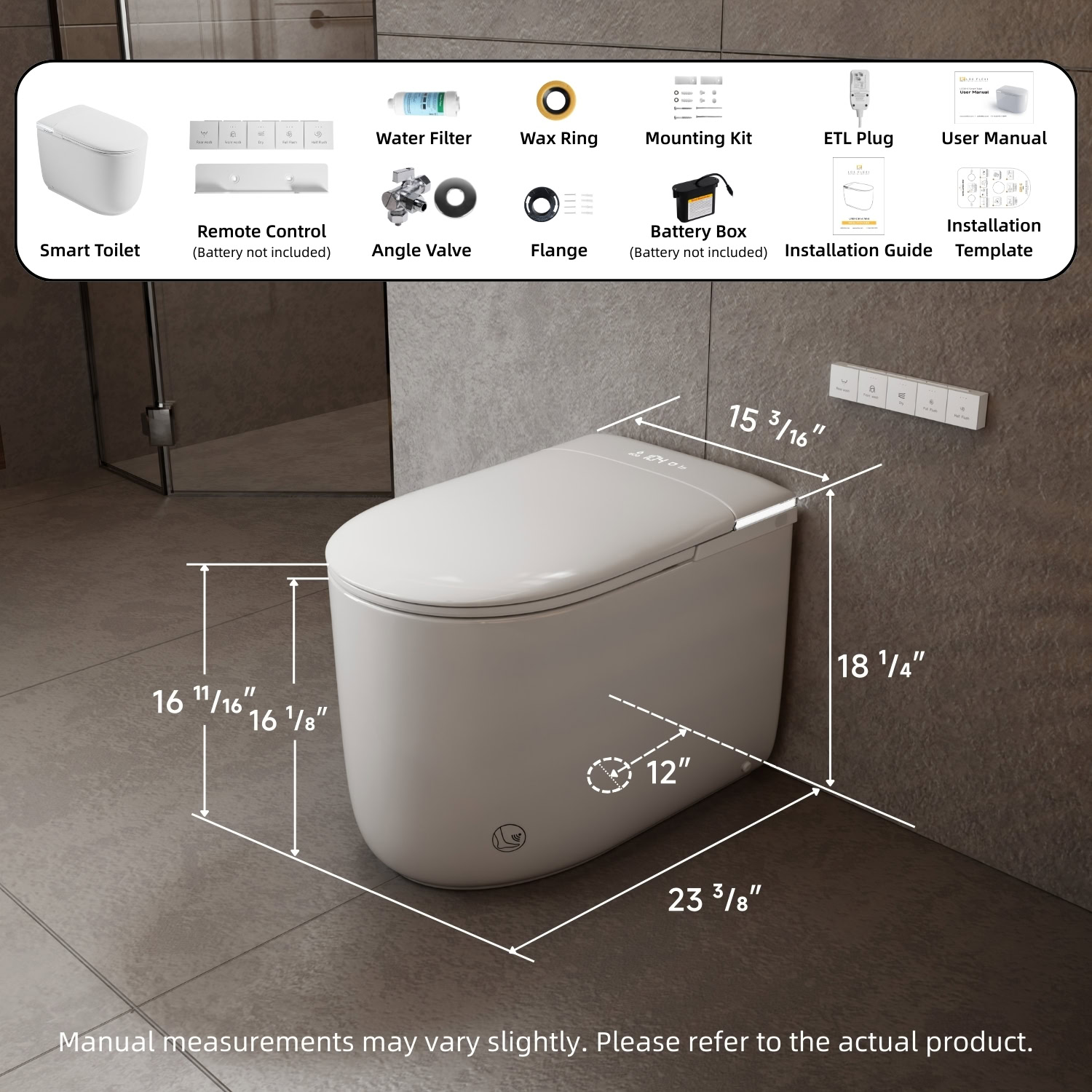 Los Flexi E81 Compact Smart Toilet With Bidet, Built In Water Tank, Auto Lid, Foot Sensor, Warm Water, Heated Seat, Air Dryer, Remote, ETL Plug
