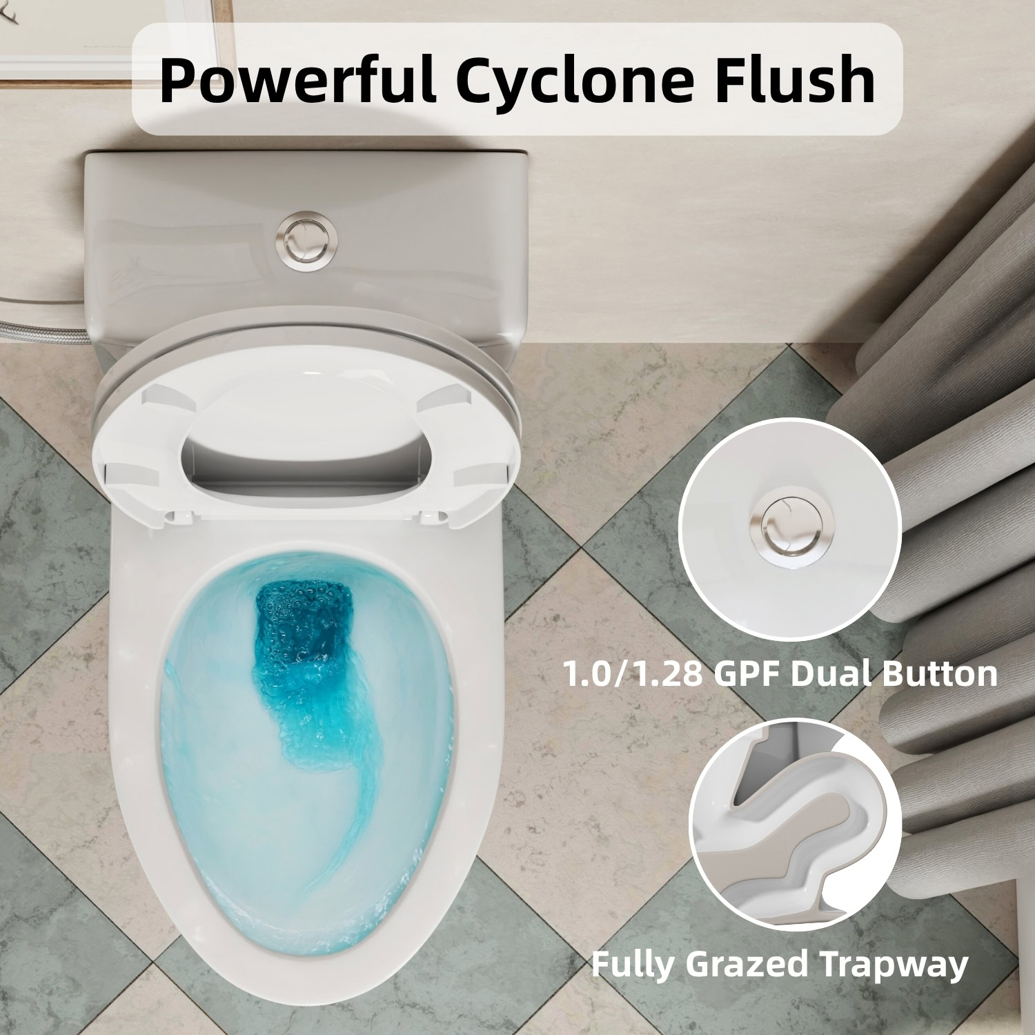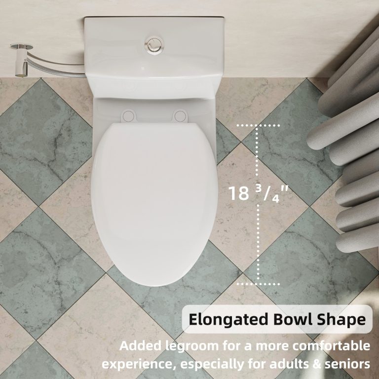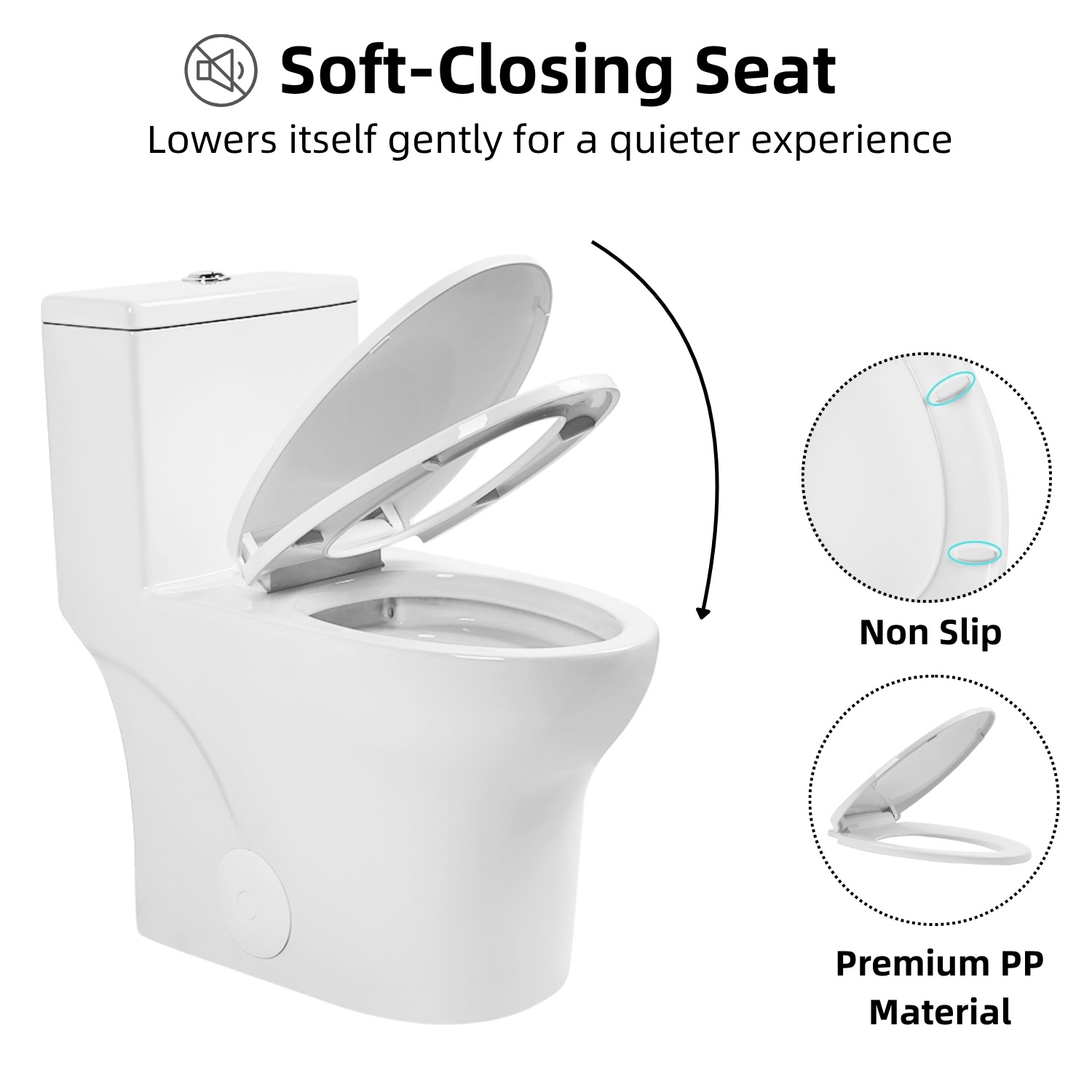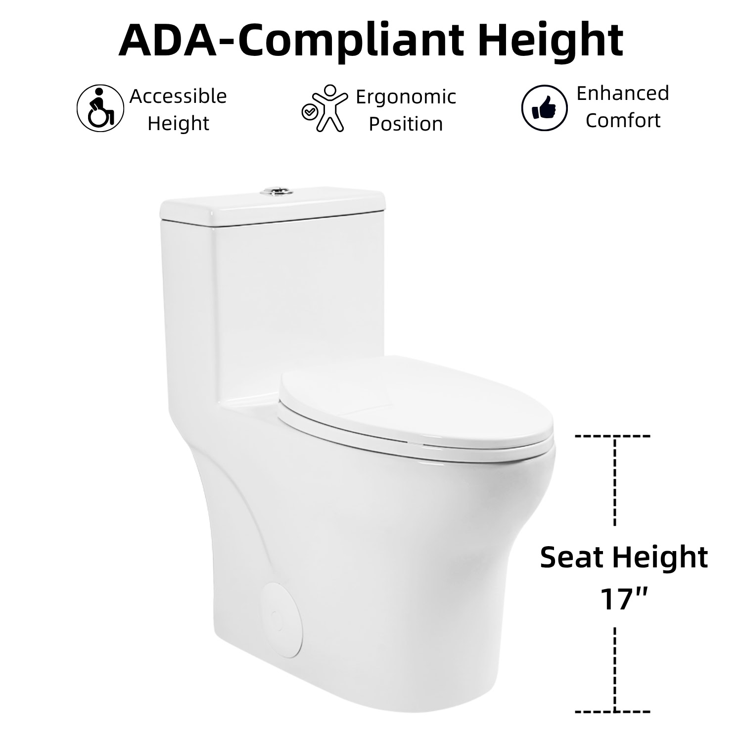Los Flexi Glossy White Ceramic 17” ADA Chair Height One-Piece Toilet for Bathroom with Elongated Bowl, 1.0/1.28 GPF Dual Flush, 12″ Rough-In & Soft-Close Seat Included