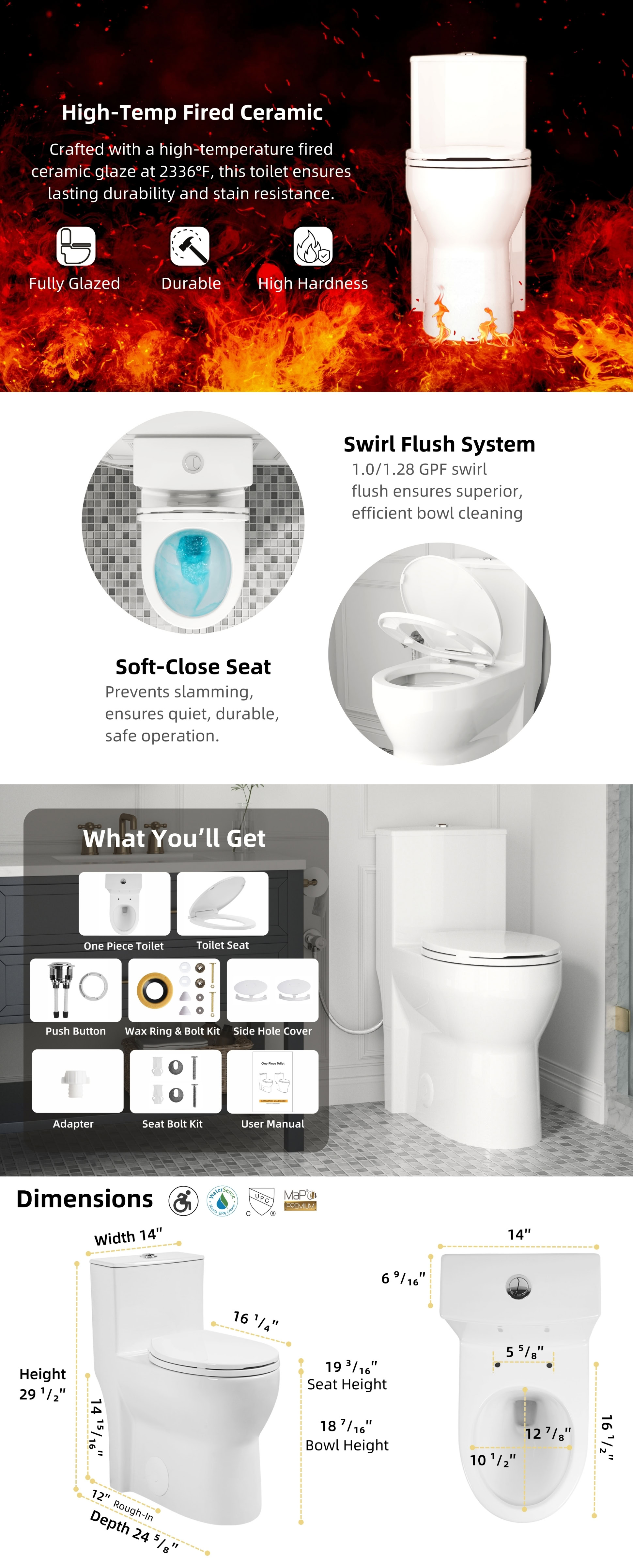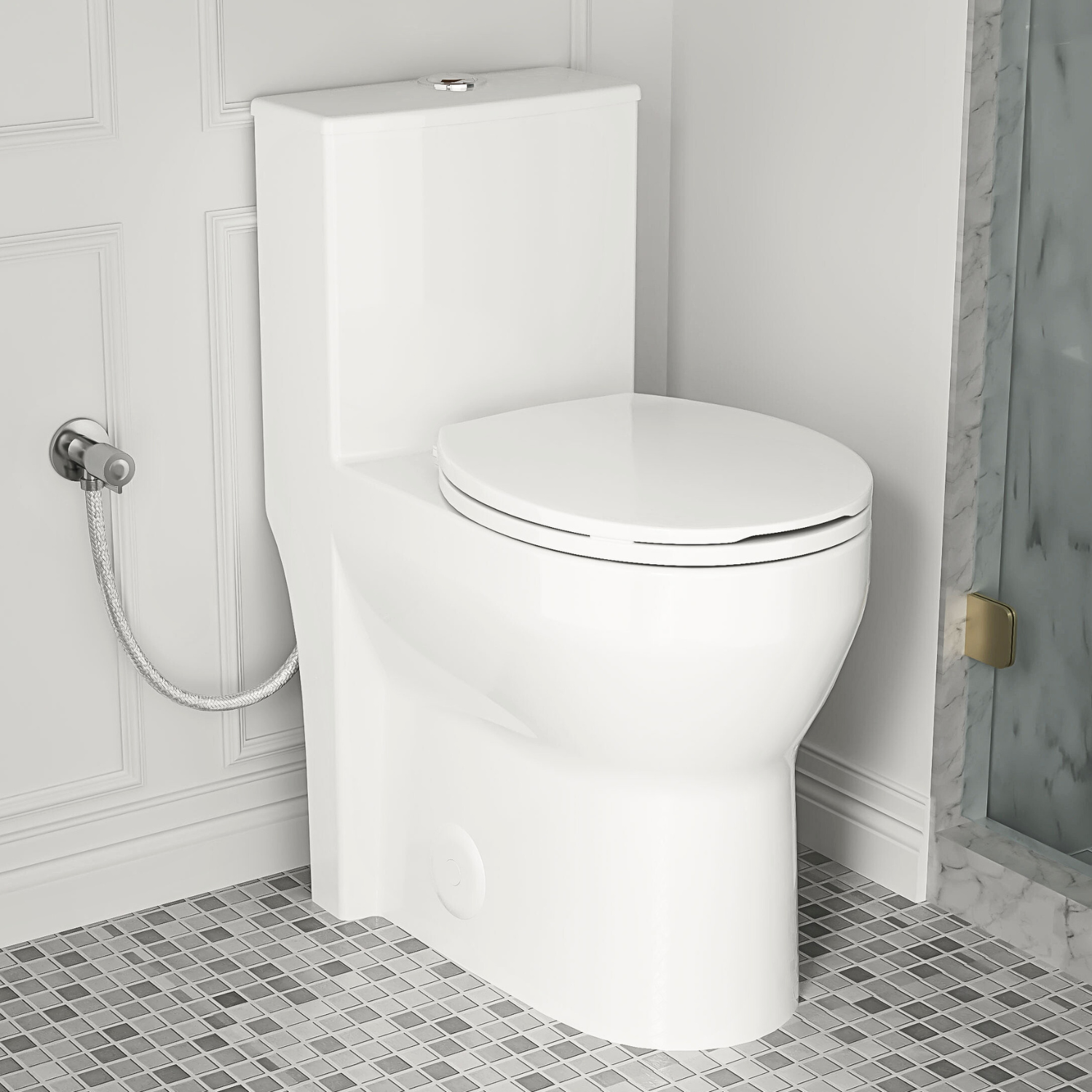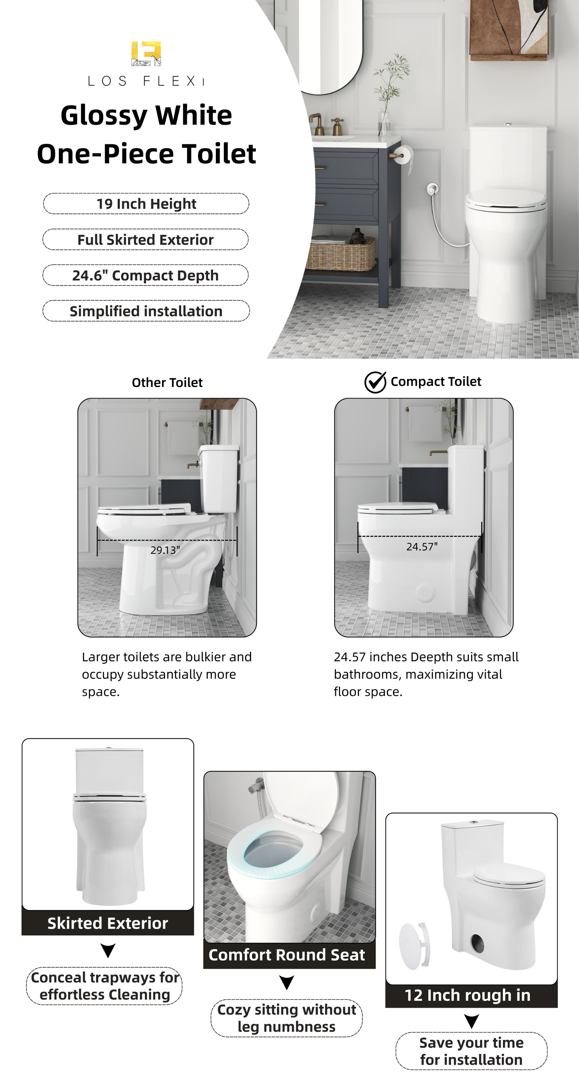 Find superior comfort with this extra tall, one-piece toilet, thoughtfully designed for your convenience. Standing at a comfortable 19 inches, the ergonomically contoured seat helps reduce strain and provides a natural, relaxing sitting experience with every use. Its modern, skirted design not only elevates your bathroom’s look but also allows for effortless cleaning. Crafted from durable ceramic with a smooth, non-porous glaze, it resists scratches and stains to maintain a like-new look for years. This toilet delivers reliable, clog-free performance with a powerful siphonic jet flushing system and 1.0/1.28 GPF settings. We stand behind its quality with a 2-year limited warranty and a dedicated team ready to offer timely support.
