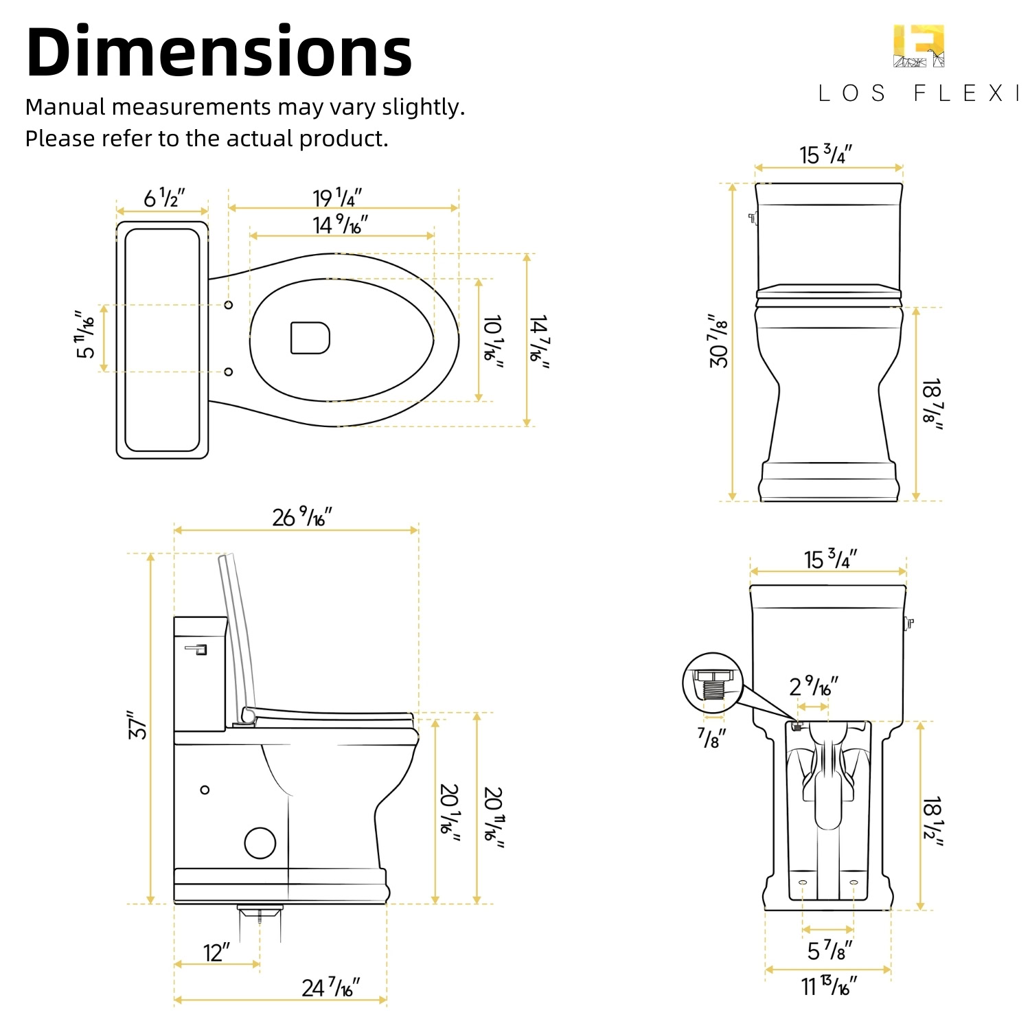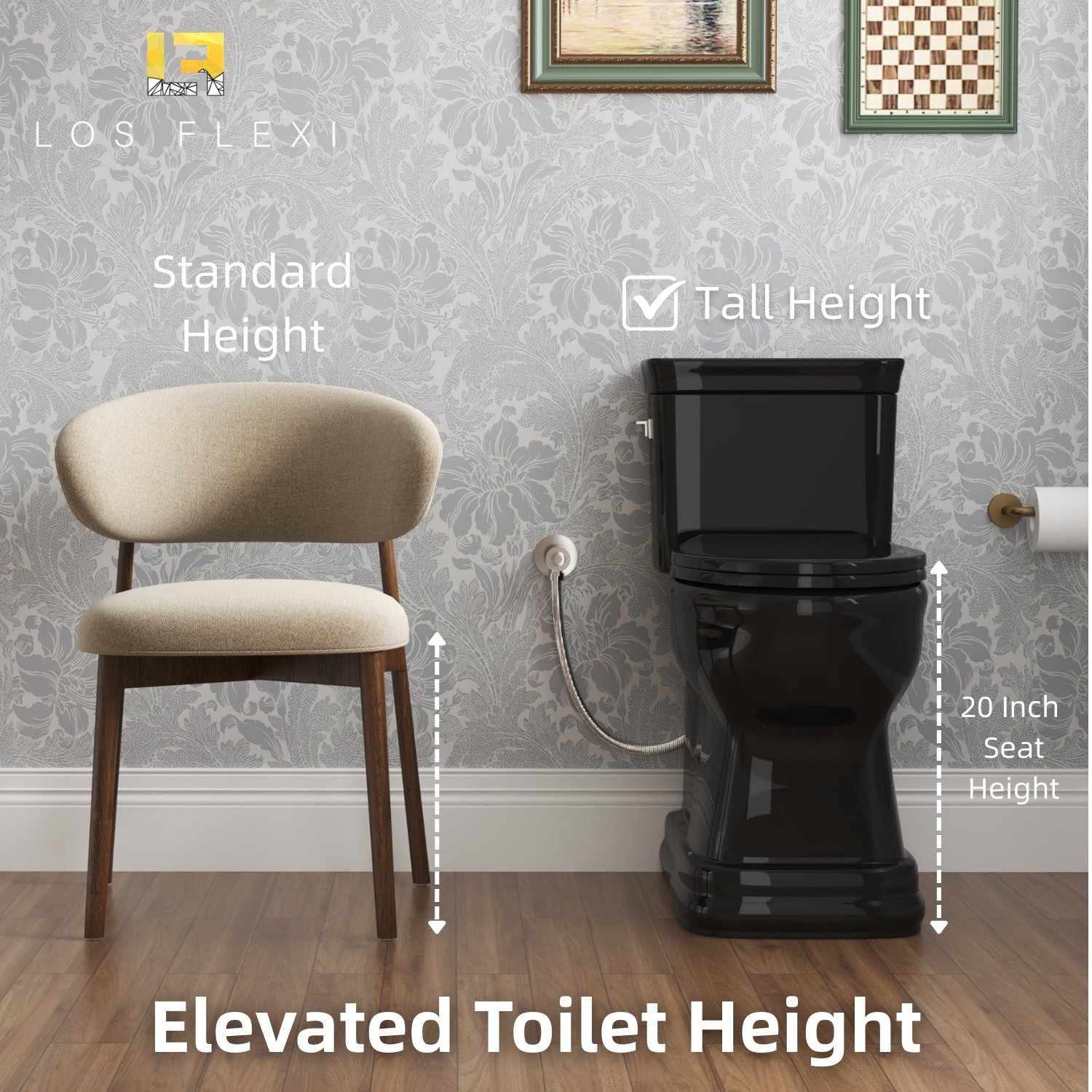 Los Flexi 19-inch tall one-piece toilet is designed to deliver comfort and stability for daily use, particularly for seniors, taller adults, and users who prefer a higher seating position. The elevated profile helps reduce the amount of bending required when sitting or standing, while the elongated bowl provides additional seating space for a more relaxed and supported experience. A single-flush system operating at 1.28 gallons per flush delivers thorough bowl rinsing with lower water usage, making it suitable for everyday household needs. Inside, the fully glazed trapway features a smooth surface that supports efficient waste movement and helps maintain a cleaner interior over time. The skirted base conceals the trapway for a streamlined appearance and simplifies exterior cleaning, complementing modern and contemporary bathroom designs. To enhance comfort further, the included soft-close seat and lid lower gently and quietly, minimizing noise and preventing sudden impact. Designed for a standard 12-inch rough-in, this floor-mounted toilet installs with hardware and is supported by a 2-year limited warranty, providing confidence in both performance and durability.