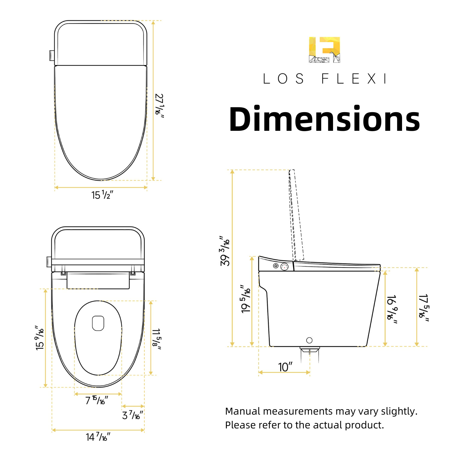 Los Flexi NE2 Non Electric Bidet Toilet, Feminine and Rear Wash, Button & Foot Kick Flush, 1000g Map & 1.0 GPF, 17.3″ ADA & Elongated, Air Pressure Assisted, 10″ Rough-In