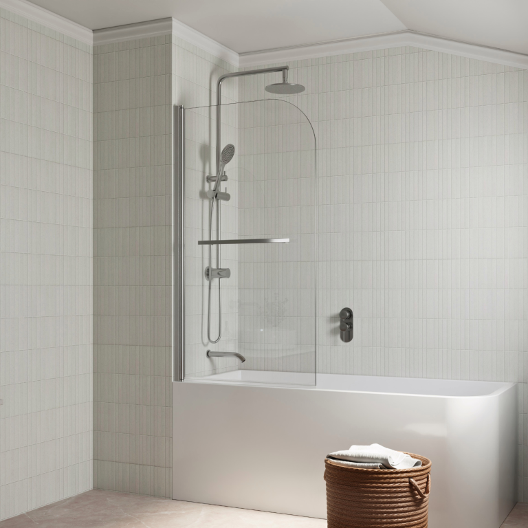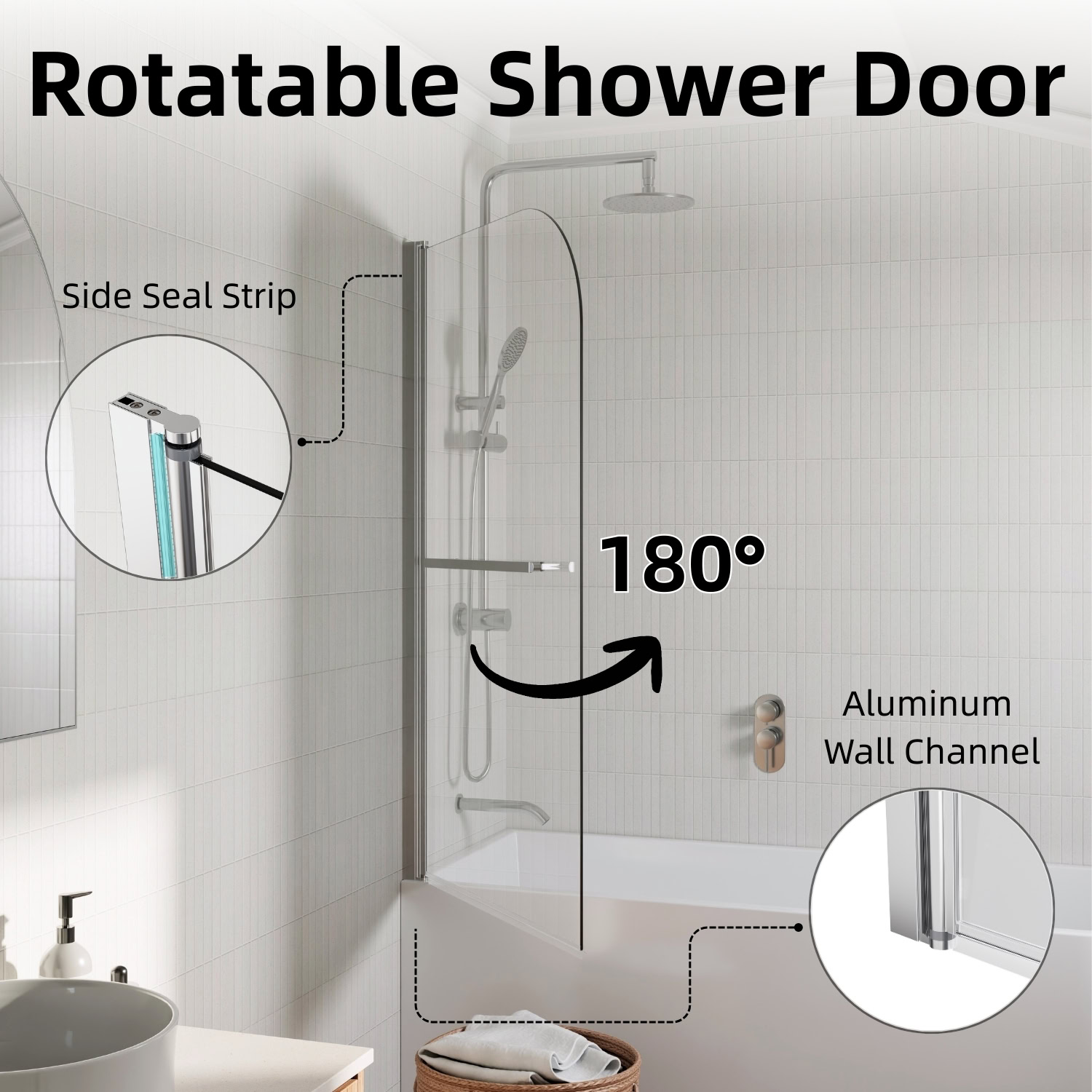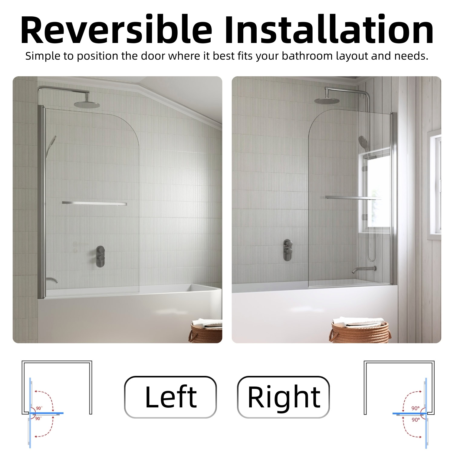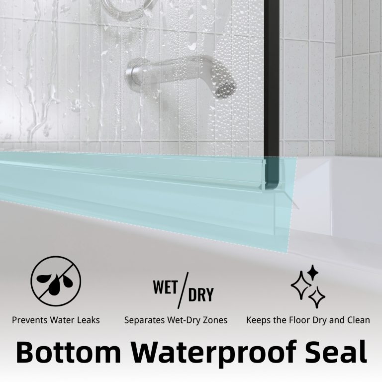 Los Flexi frameless pivot half shower door combines style, flexibility, and safety to enhance any bathroom. Constructed from 1/4″ (6mm) tempered glass, it is designed to withstand daily use, and in the rare event of breakage, it fragments into small, blunt pieces to protect users. The pivot hinge allows a full 180° swing, inward or outward, providing easy access and effortless cleaning. Installation on either side creates a wide, space-efficient entry while also serving as a splash-blocking screen. The sleek frameless design with a chrome finish brightens the bathroom and visually expands smaller spaces, giving the tub area an airy, modern feel. A water-retaining strip along the bottom helps contain splashes and keeps the floor dry, clearly separating wet and dry zones. Installation is straightforward with included hardware and illustrated instructions, and responsive customer service plus a 1-year warranty ensures lasting satisfaction and peace of mind.