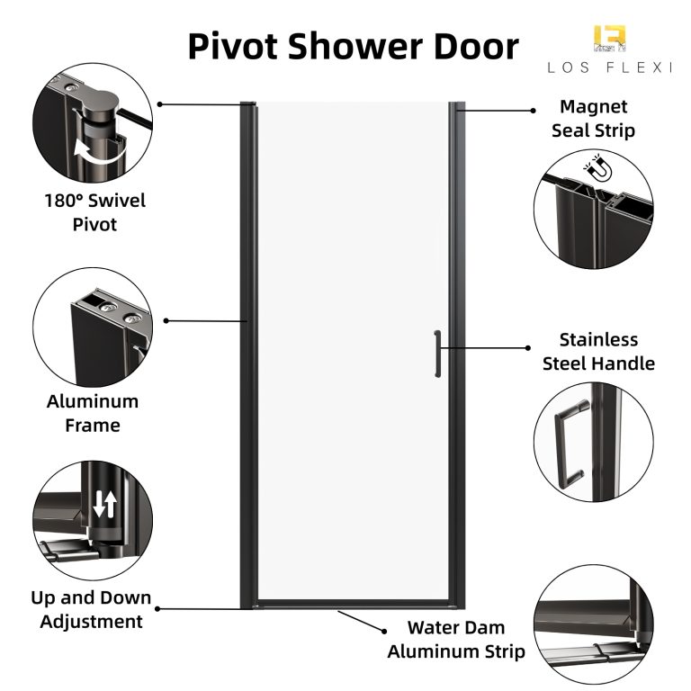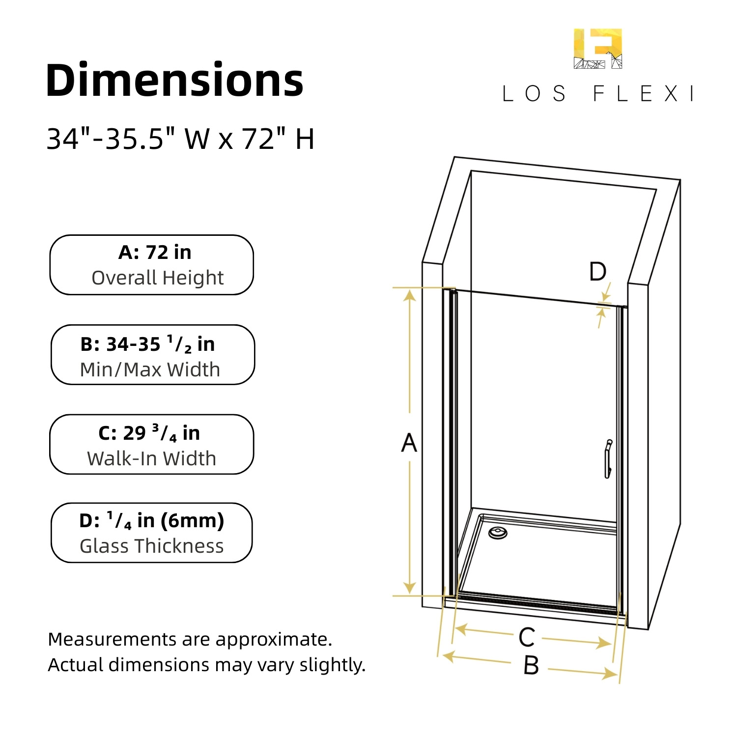 Los Flexi Pivot Shower Door Matte Black 34″W x 72″H with 1/4″ Tempered Glass