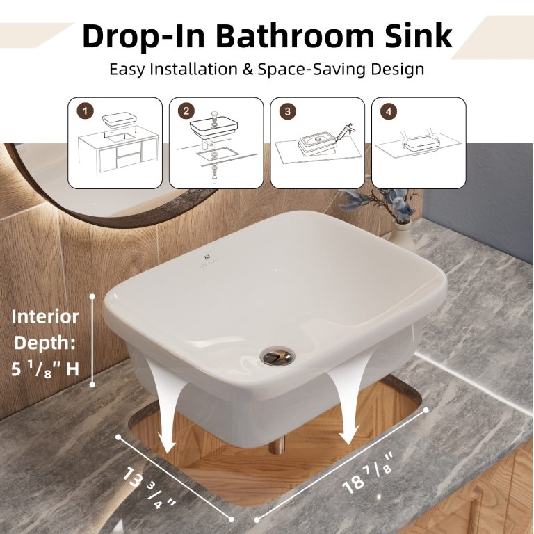 The Los Flexi 20″L x 15″W Drop-In Bathroom Sink features a sleek rectangular design with thin edges and a curved bowl, adding elegance to any bathroom. Made from premium glossy white vitreous china, this semi-recessed sink is resistant to scratches, stains, and water buildup, ensuring durability and minimal maintenance. Its efficient drainage system, featuring a central drain hole and a carefully designed slope, prevents clogging and reduces splashing for a cleaner experience. Safety is enhanced with rounded edges, making it suitable for households with children or elderly members. This modern sink comes with a complete installation package, including a pop-up drain, ensuring a hassle-free setup and a stylish upgrade for your bathroom.