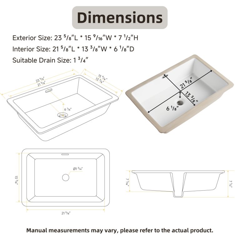 This 24-inch modern rectangular bathroom undermount sink offers a sleek, contemporary design with a glossy white finish and rounded edges, enhancing your bathroom’s aesthetics. Made from high-quality vitreous china, it’s scratch-resistant and easy to maintain. The efficient drainage system, featuring a chrome-finished overflow and standard drain opening, prevents spills and ensures smooth water flow. Its space-saving undermount installation maximizes countertop space, providing a neat and organized appearance. This undermount vanity sink fits seamlessly into various bathroom setups, making it versatile and practical. With a 2-year limited warranty, responsive customer support, and durable packaging, this ceramic sink ensures long-lasting quality and reliability, making it an ideal choice for upgrading your bathroom’s style and functionality.