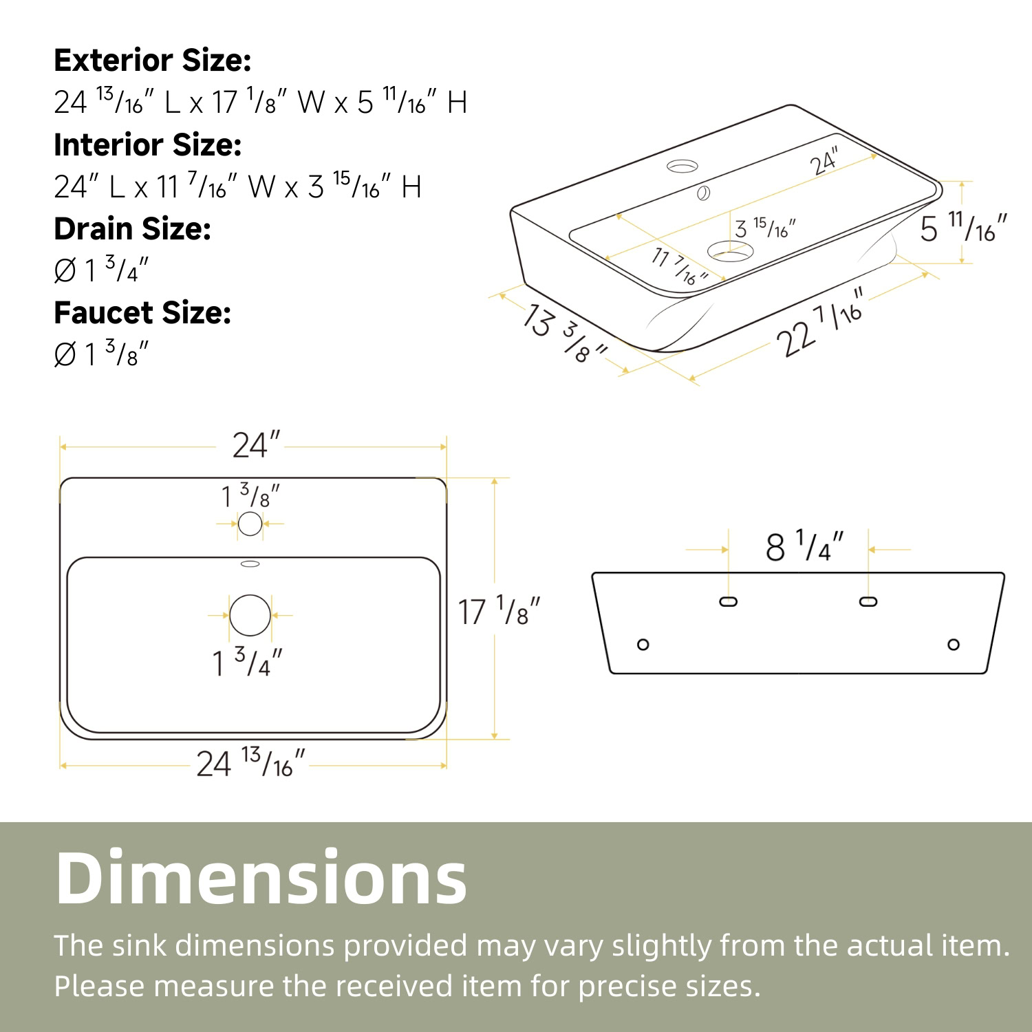 Los Flexi Rectangular Wall Mount Bathroom Sink With Single Faucet Hole 24″L X 17″W