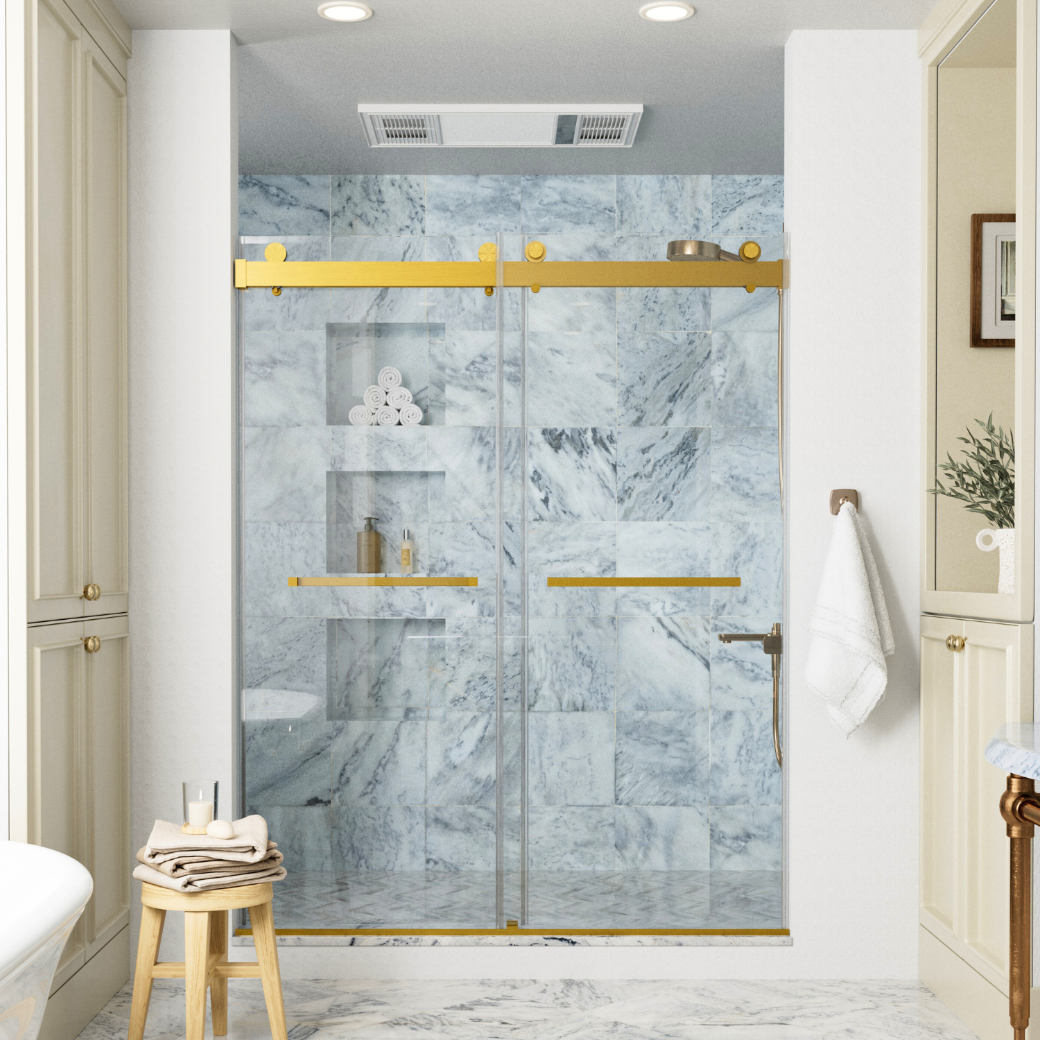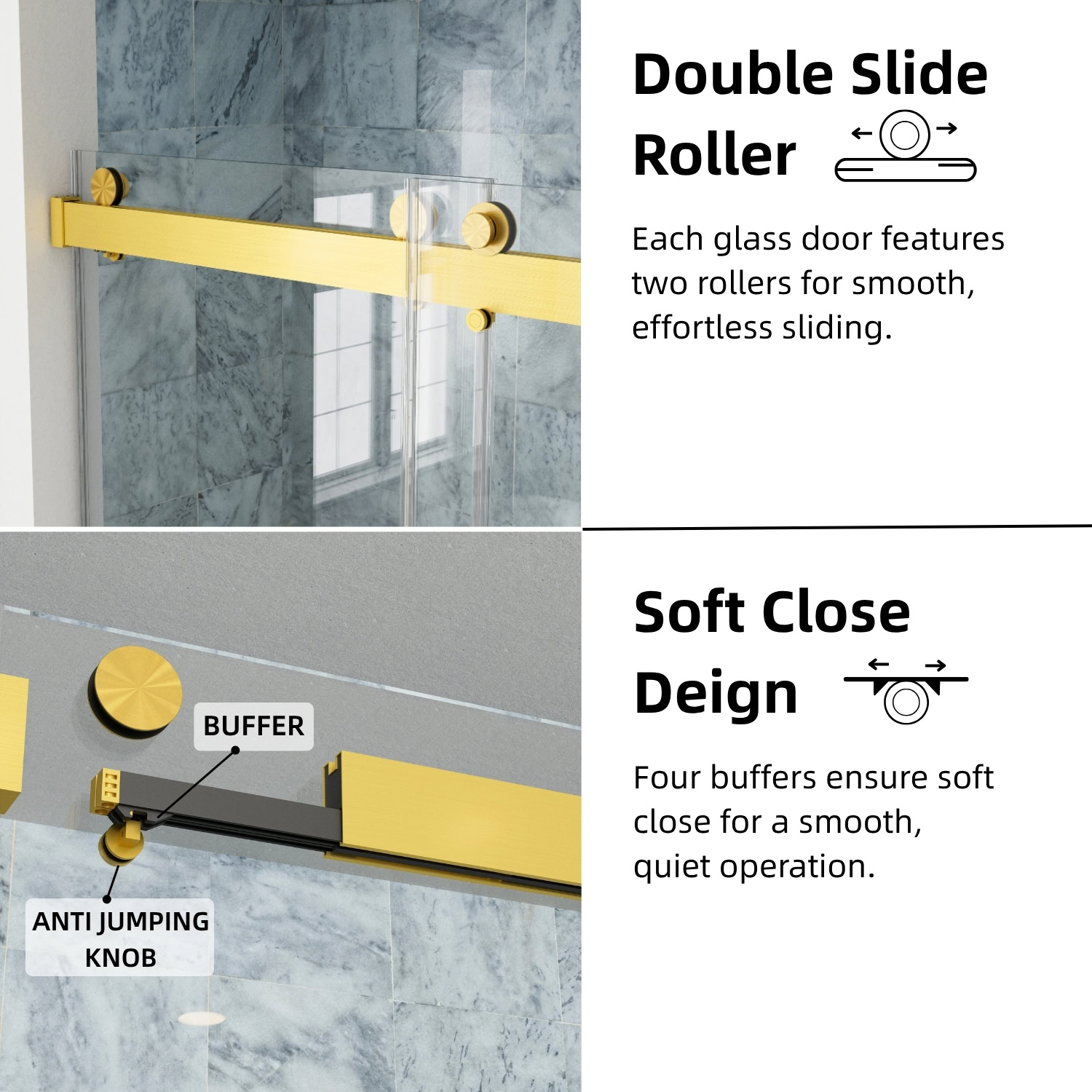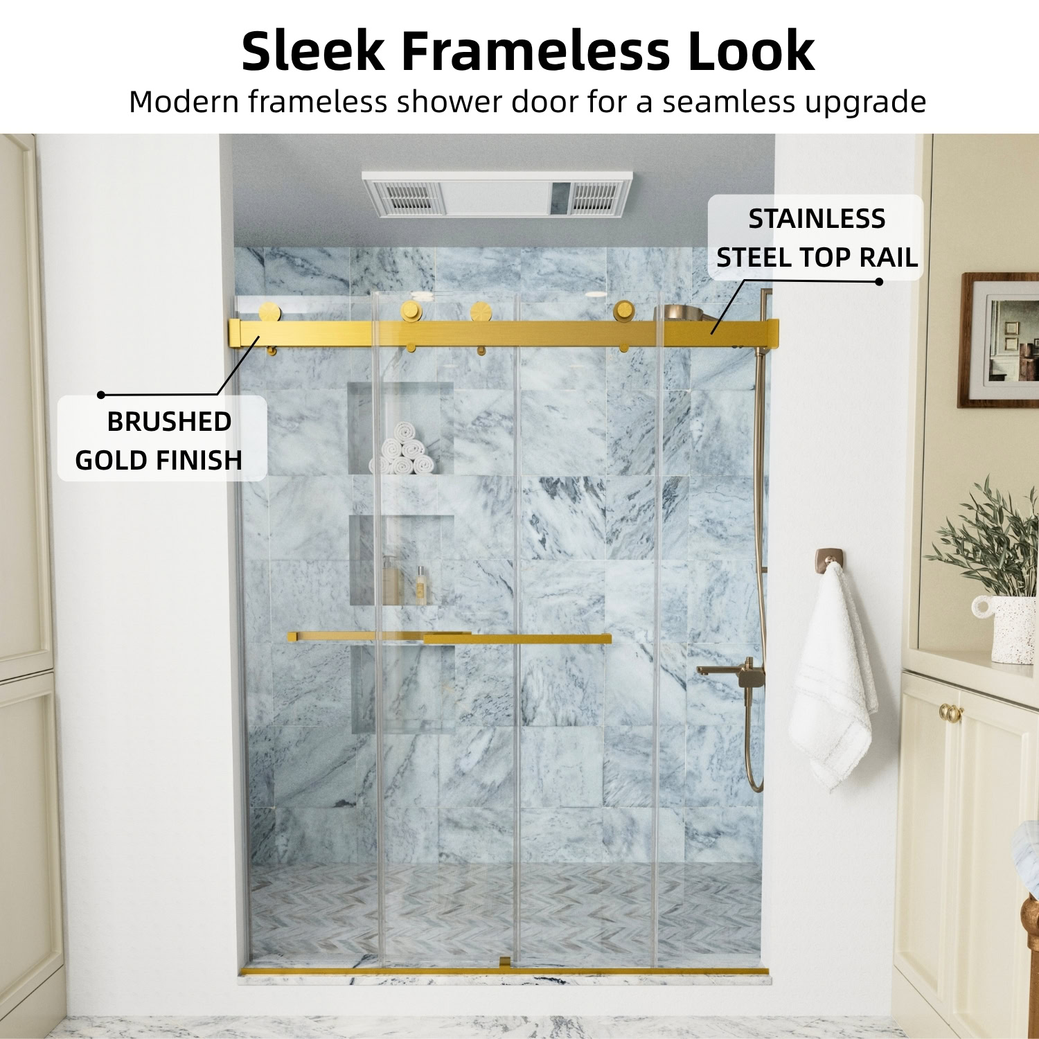 Los Flexi Sliding Shower Door Brushed Gold 60″W x 76″H with 3/8″ Tempered Glass