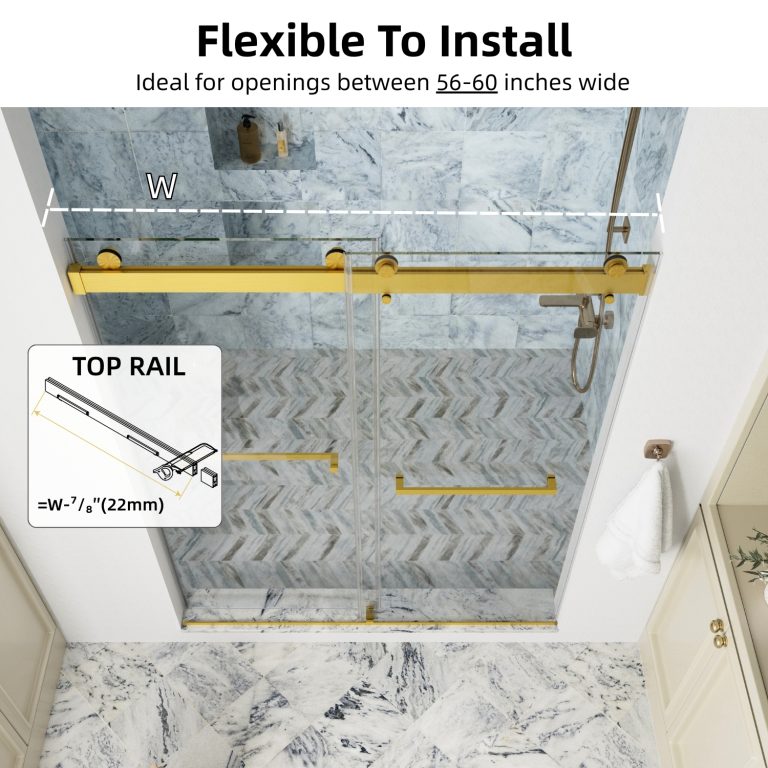 The soft-close system ensures a quiet and smooth operation, while the stainless steel top rail and towel bars provide long-lasting durability with a luxurious gold accent. The adjustable fit accommodates openings between 50″ to 60″, making it a versatile choice for various bathroom layouts. With an integrated dry-wet separation, this shower door helps keep your bathroom clean and dry. Plus, it’s backed by a 1-year warranty for added confidence in its performance.