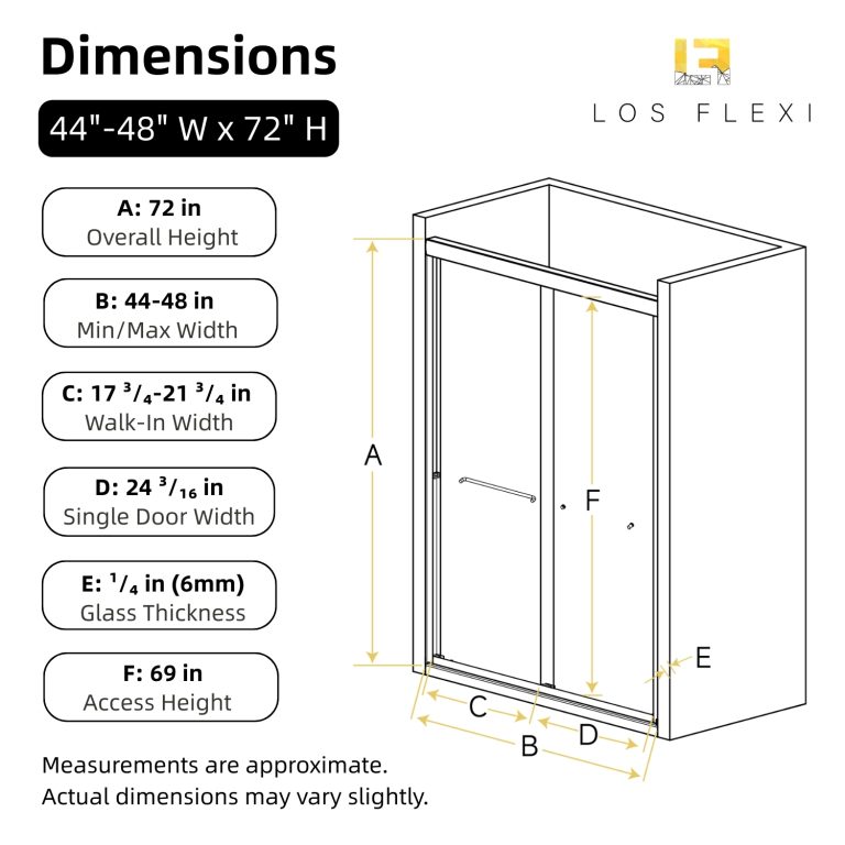 Los Flexi Sliding Shower Door Brushed Nickel 48″W x 72″H with 1/4″ Tempered Glass