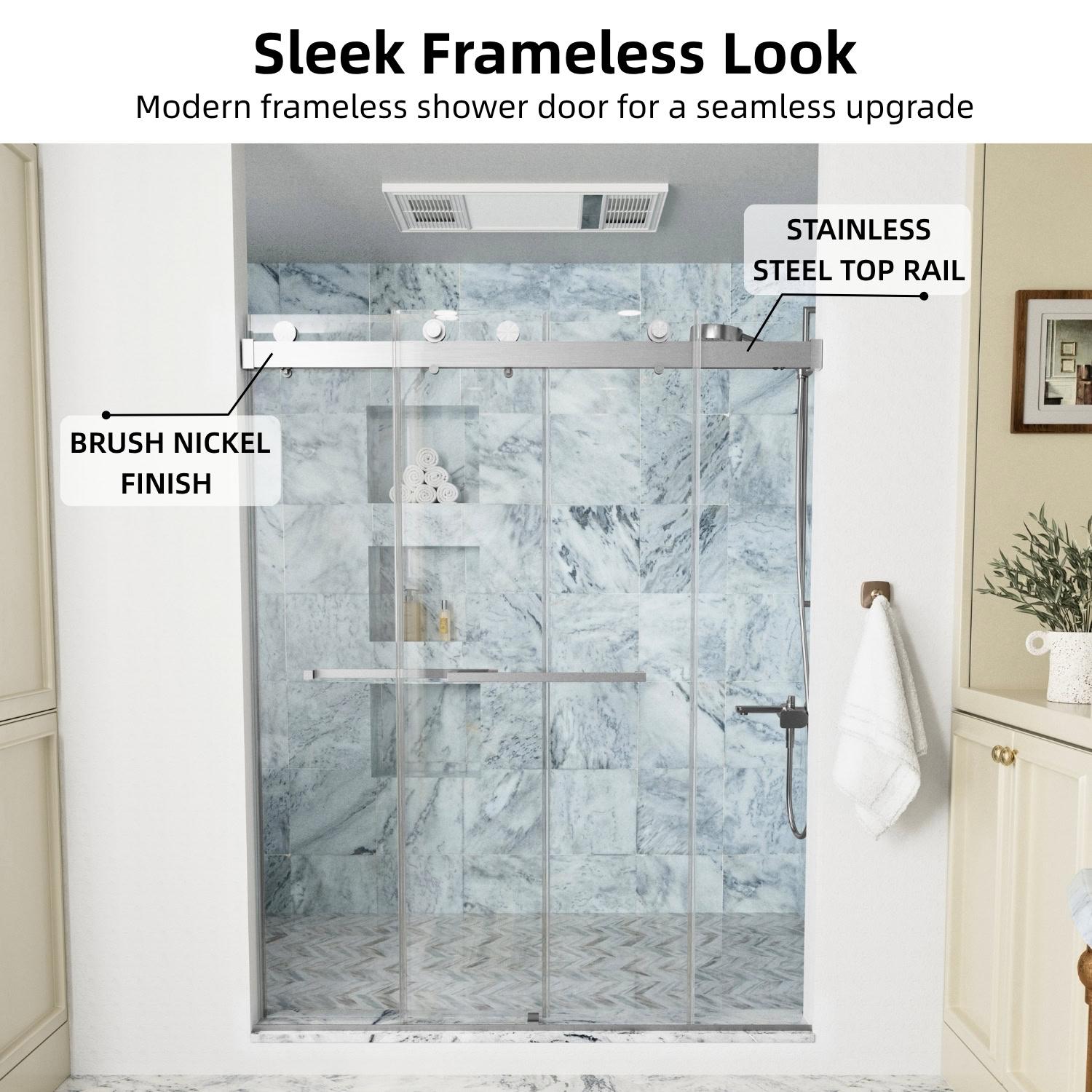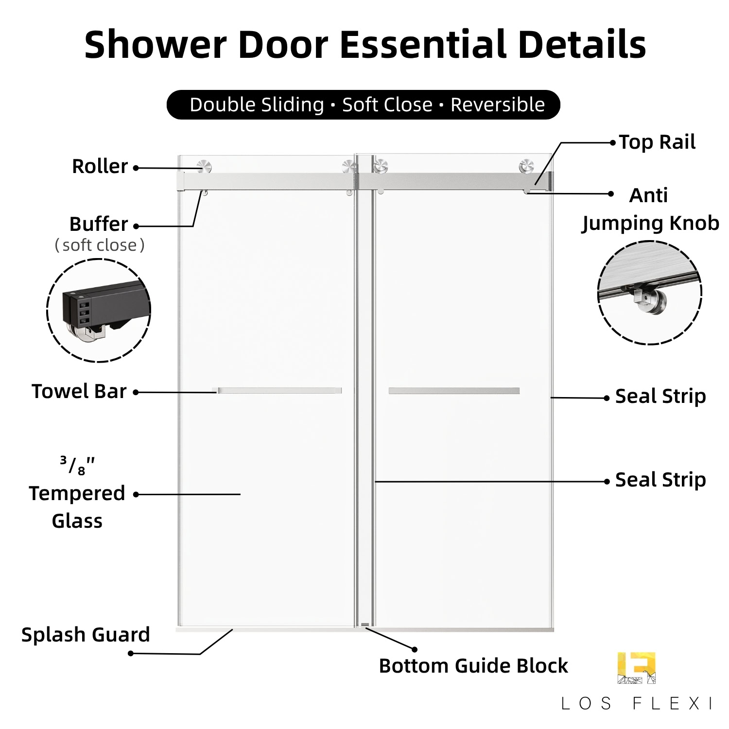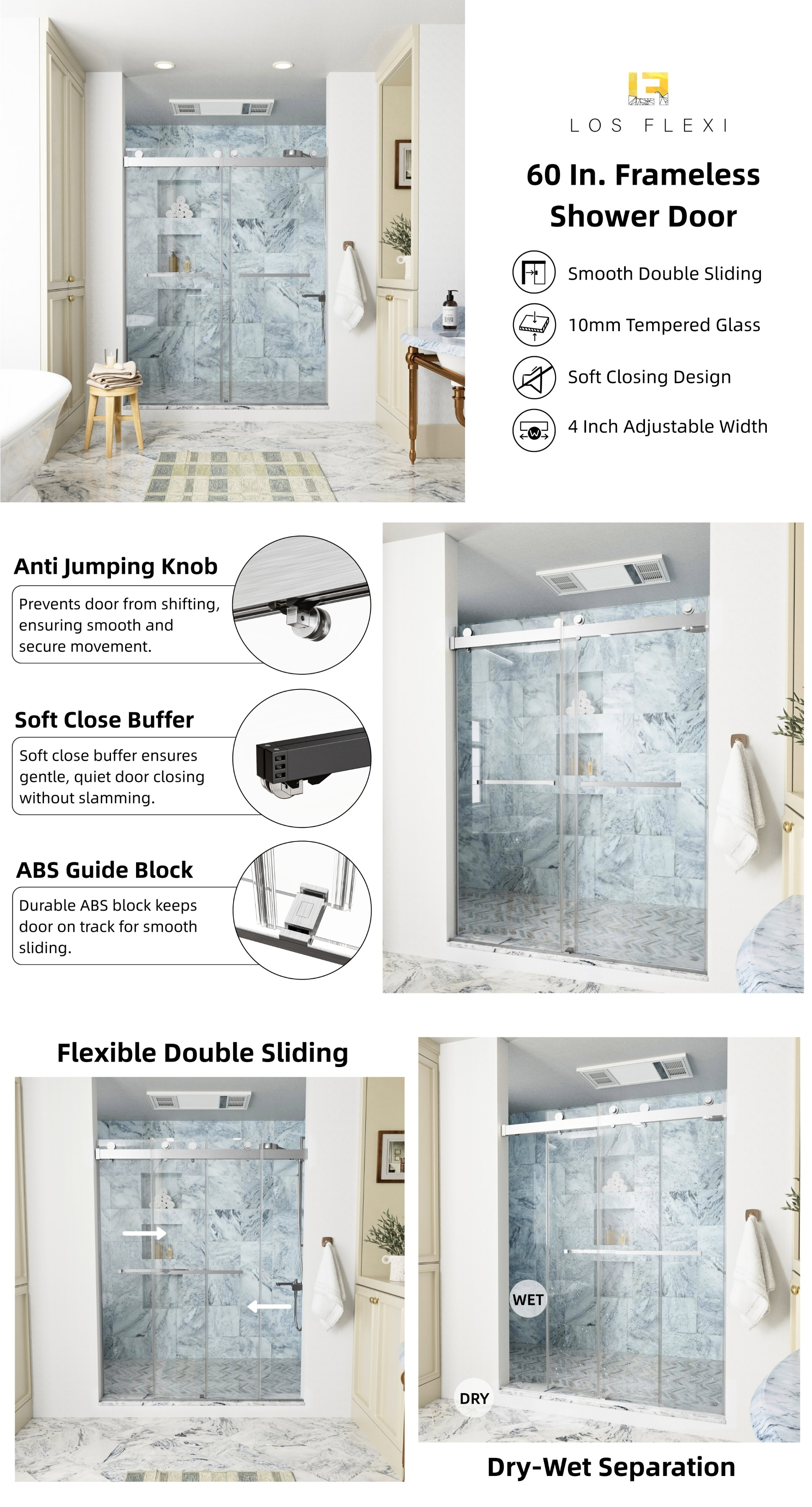 Los Flexi Sliding Shower Door Brushed Nickel 60″W x 76″H with 3/8″ Tempered Glass