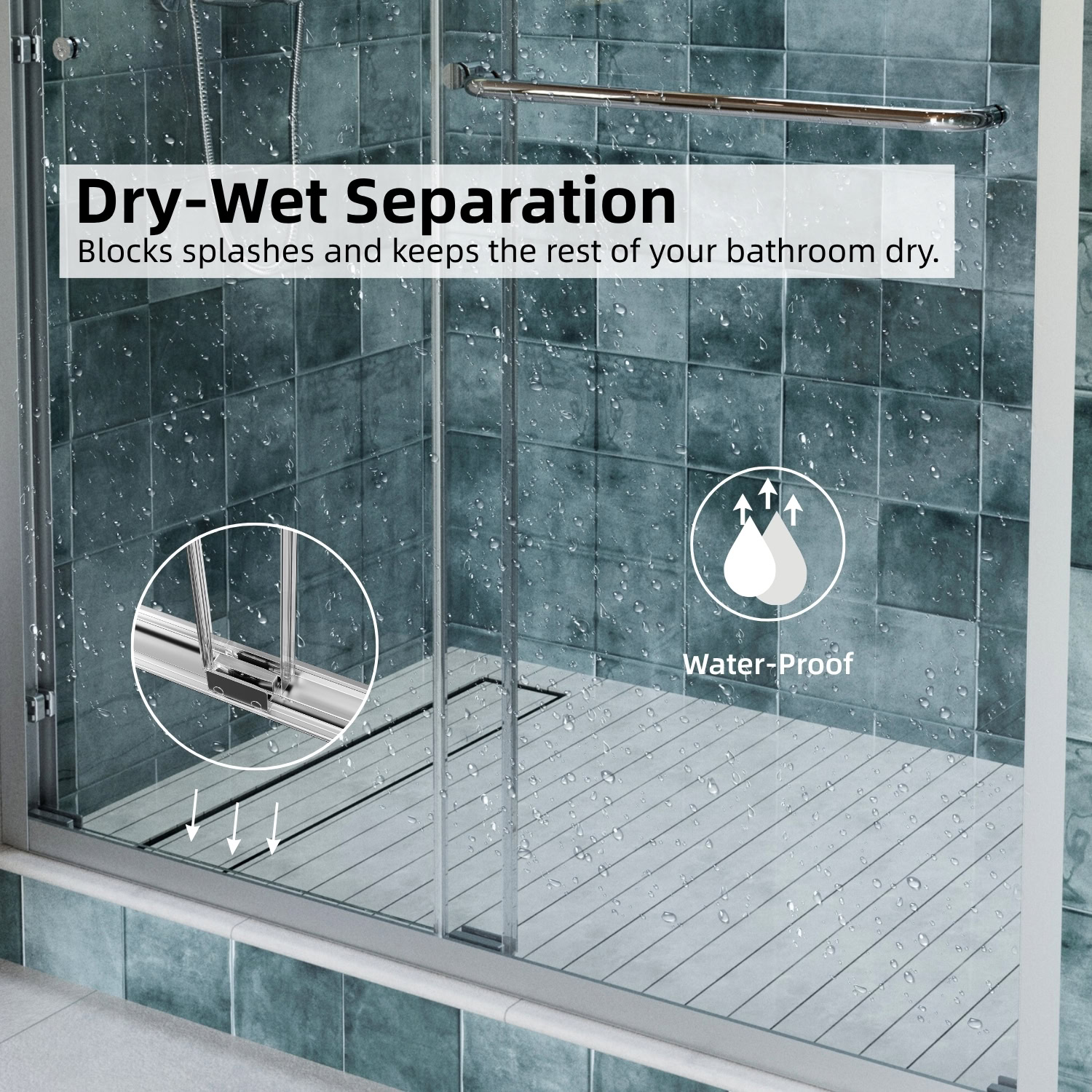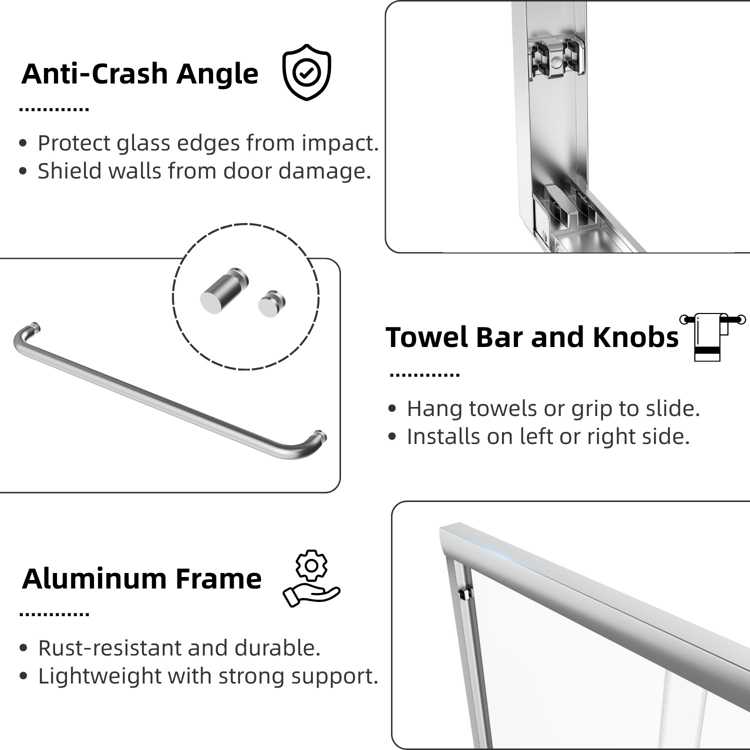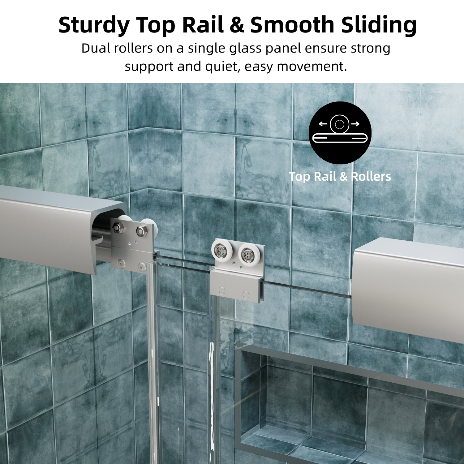 Engineered for ease of use, the door features dual rollers for smooth, effortless sliding from either side. Its adjustable width fits openings from 44 to 48 inches, and the side seal strips, along with anti-collision corners, help minimize water splashing and protect the glass. Backed by a 1-year warranty, this door ensures both functionality and long-term reliability.