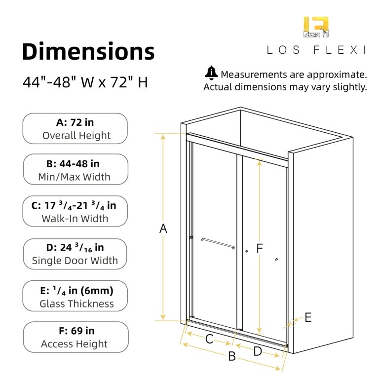 Enhance your bathroom with the Los Flexi 44-48 inch Bypass Double Sliding Shower Door. This shower door combines a sleek semi-frameless design with a polished chrome frame, offering a modern, clean aesthetic. The ¹/₄-inch SGCC-certified tempered glass provides both durability and visual appeal, elevating your bathroom’s look.