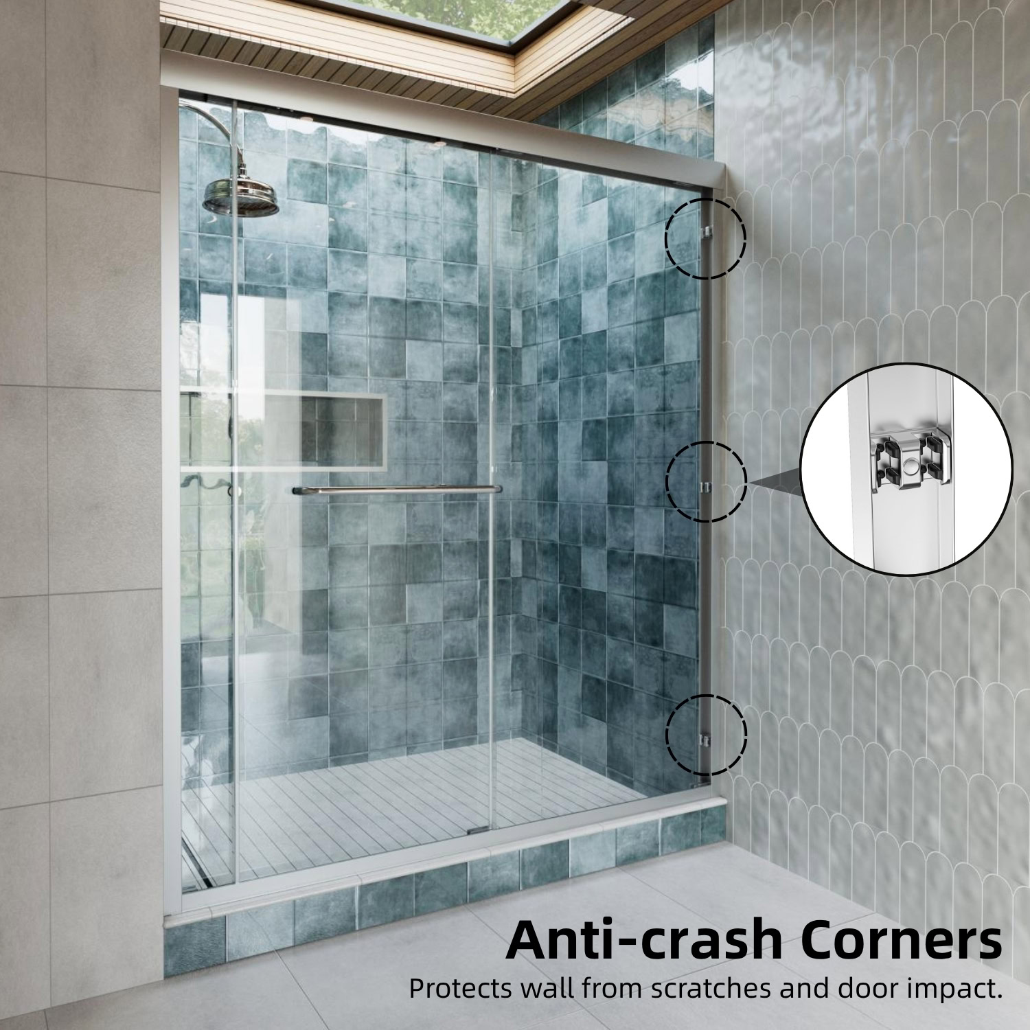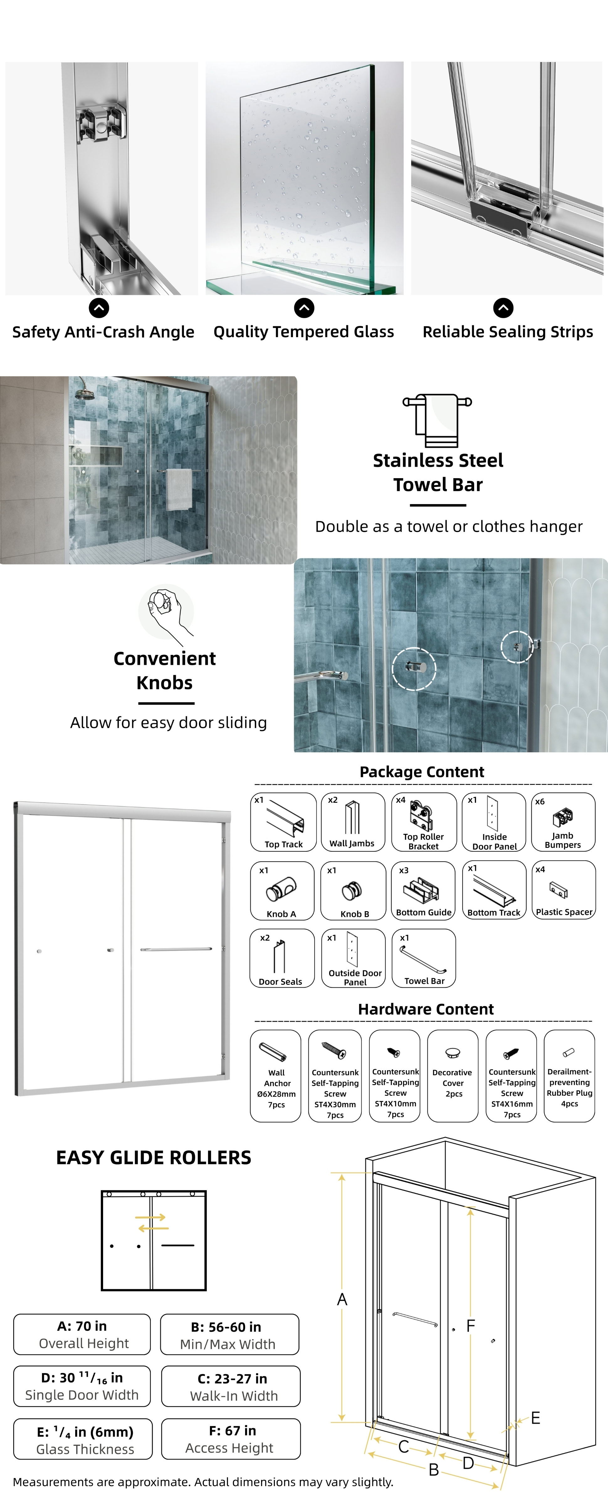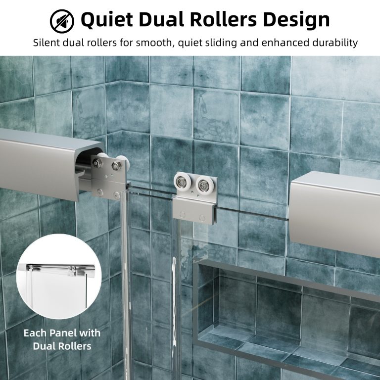 This 60 inch semi-frameless sliding shower door offers a stylish and practical solution for modern bathrooms, featuring a sleek chrome frame and ¹/₄” (6mm) tempered glass. Designed for 56″–60″ openings, it provides a smooth, quiet sliding motion with dual rollers, making it an ideal choice for walk-in shower spaces.
