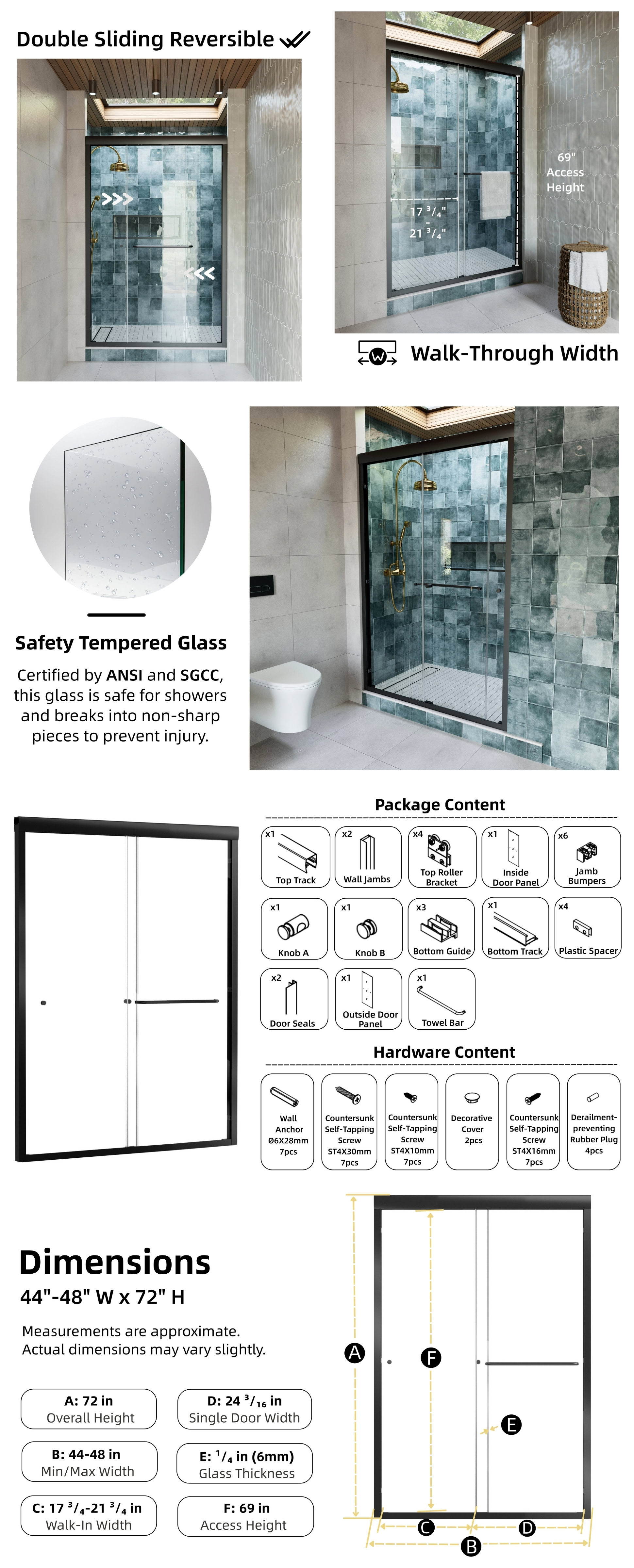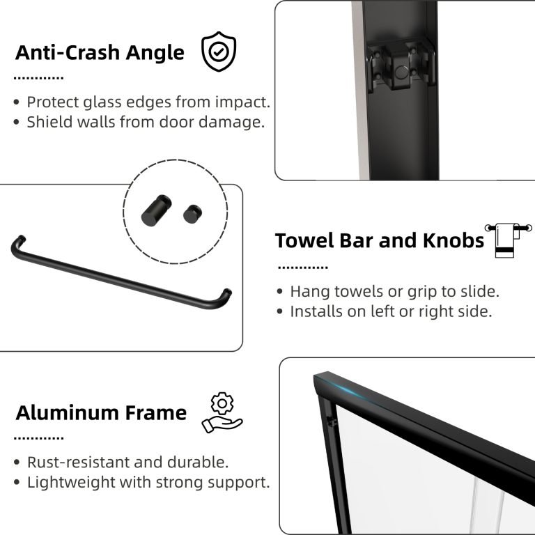 Featuring smooth dual rollers for easy sliding, this shower door offers effortless operation while ensuring a secure fit with its adjustable range. Enhanced with water-resistant seals and impact-resistant corners, it provides a practical solution for reducing water leaks and protecting the glass. Complete with installation hardware and a 1-year warranty for peace of mind.