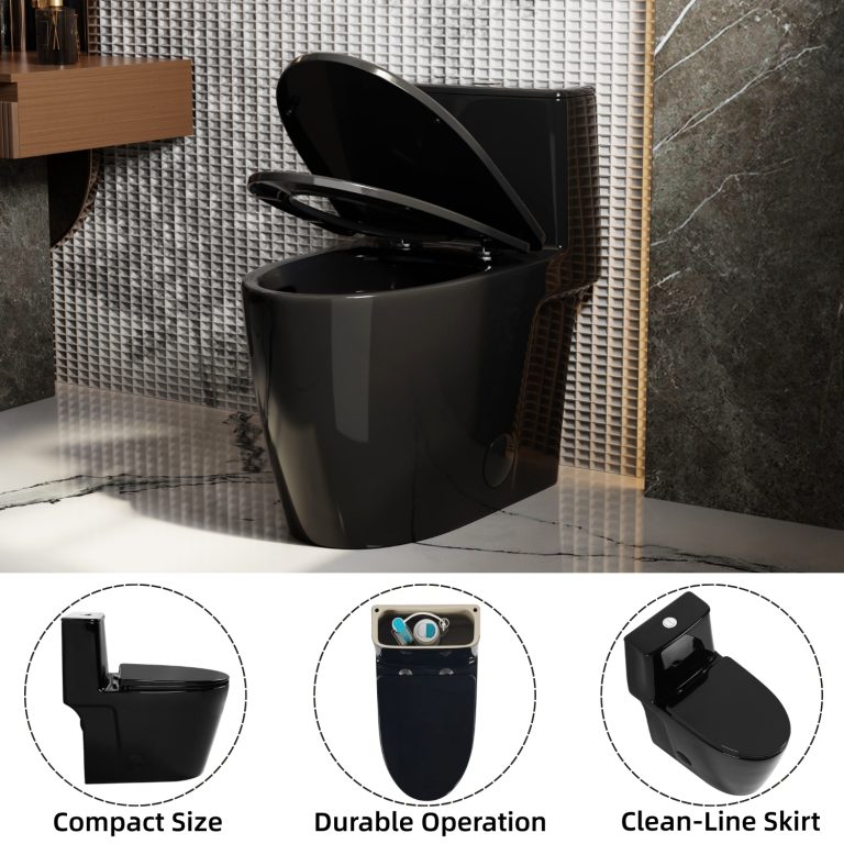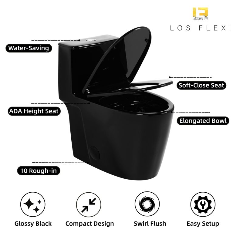 Los Flexi NU6 17.3″ Gloss Black Elongated One Piece Toilet With 10″ Rough-In