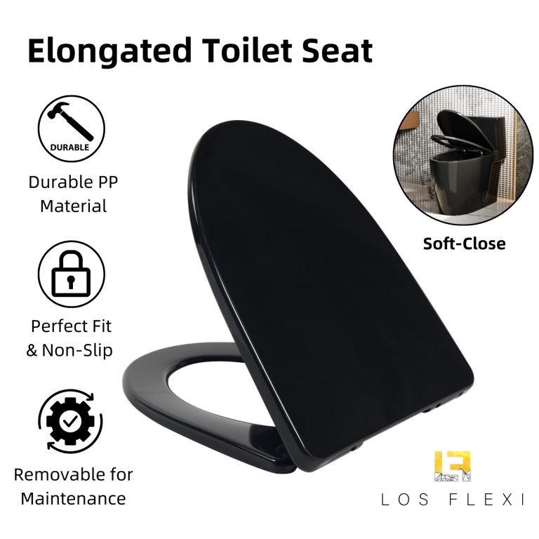 The Los Flexi glossy black elongated one-piece toilet brings a bold, modern statement to contemporary bathrooms while delivering everyday comfort and efficiency. Finished in a high-gloss black ceramic, it adds depth and refinement to design-forward spaces while maintaining a smooth, easy-to-clean surface. The streamlined, full-skirted body and one-piece construction create a seamless look with fewer crevices for simpler maintenance.