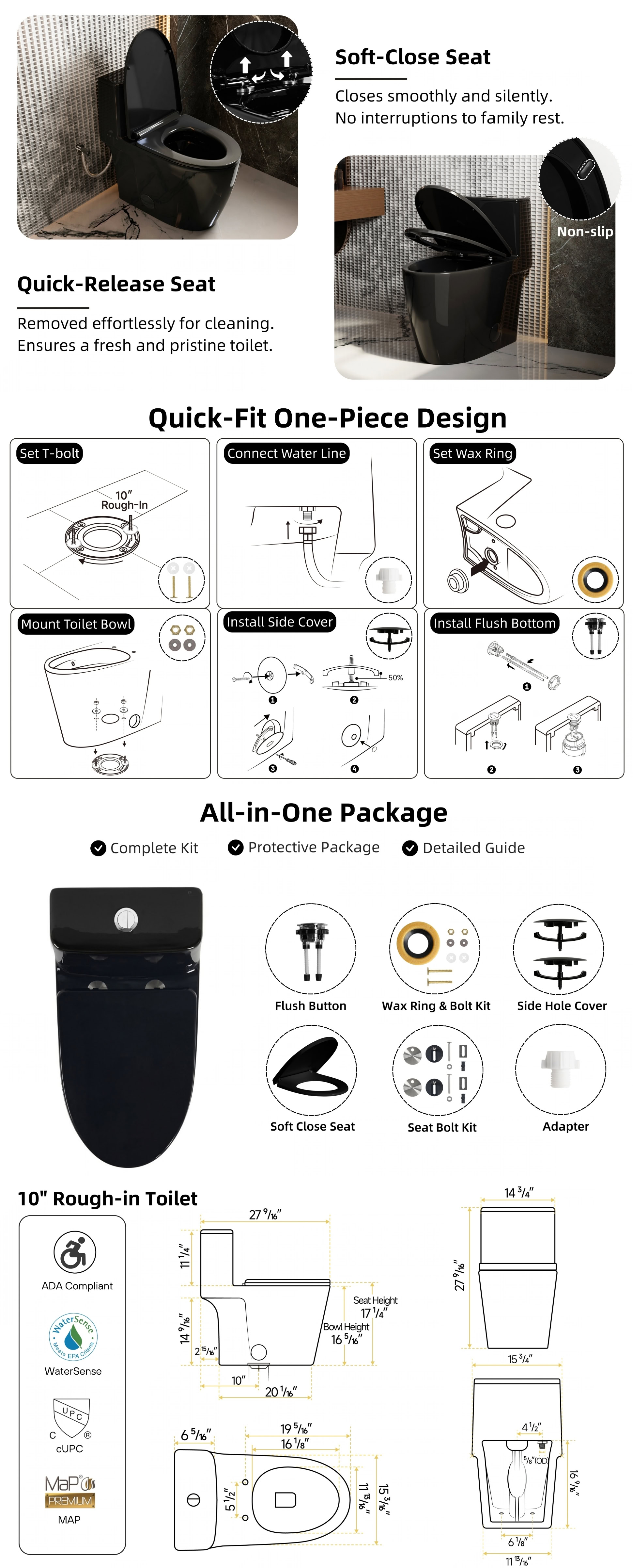 - All Essentials for Quick Installation (Wax Ring, Bolts, Adapter, etc.)