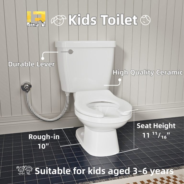 Suitable for kids ages 2–8! This toddler toilet features a 11.69″ seat height, 1.28 GPF flush, and fits a standard 10″ rough-in. Comfortable and easy to clean.